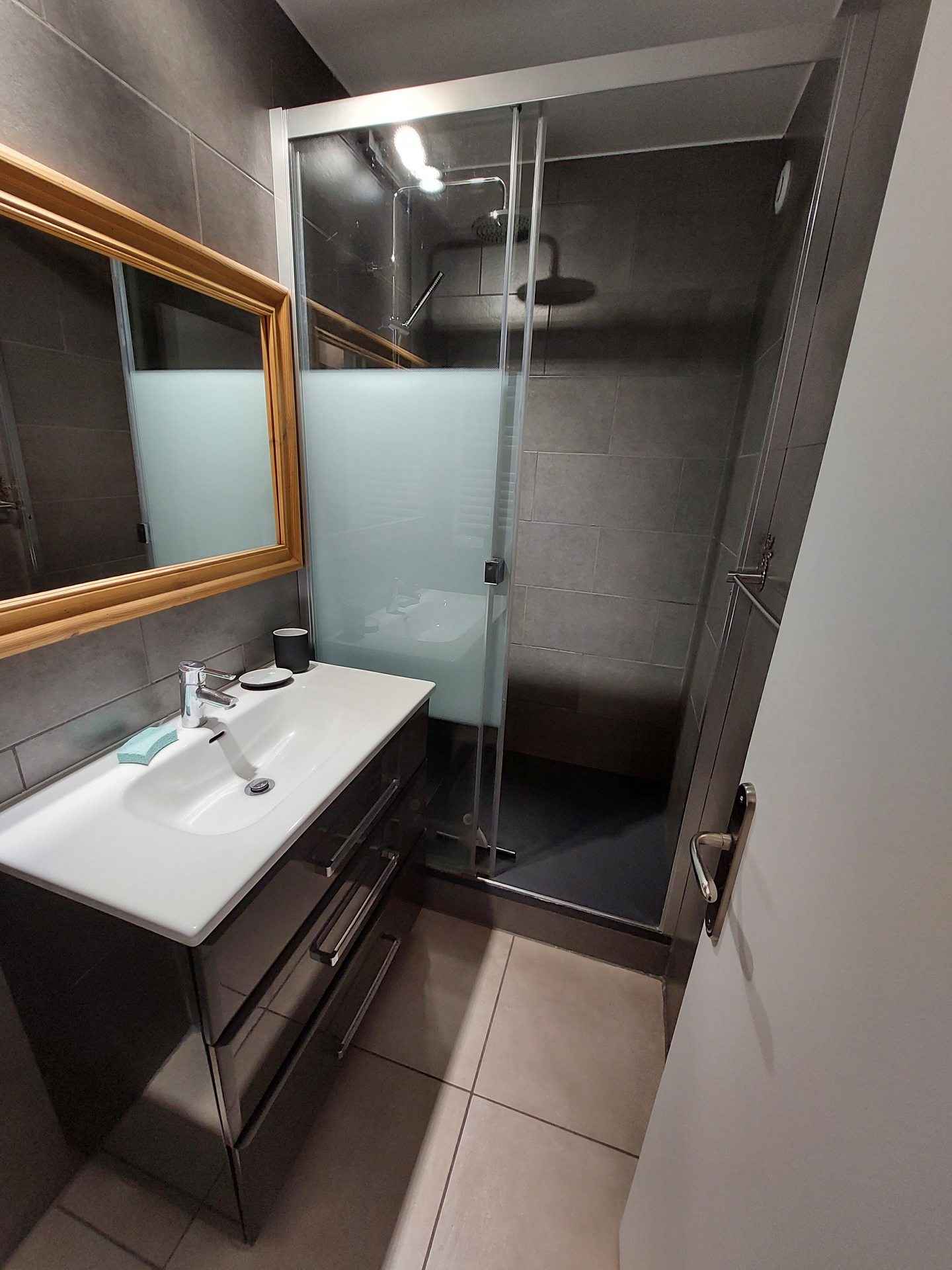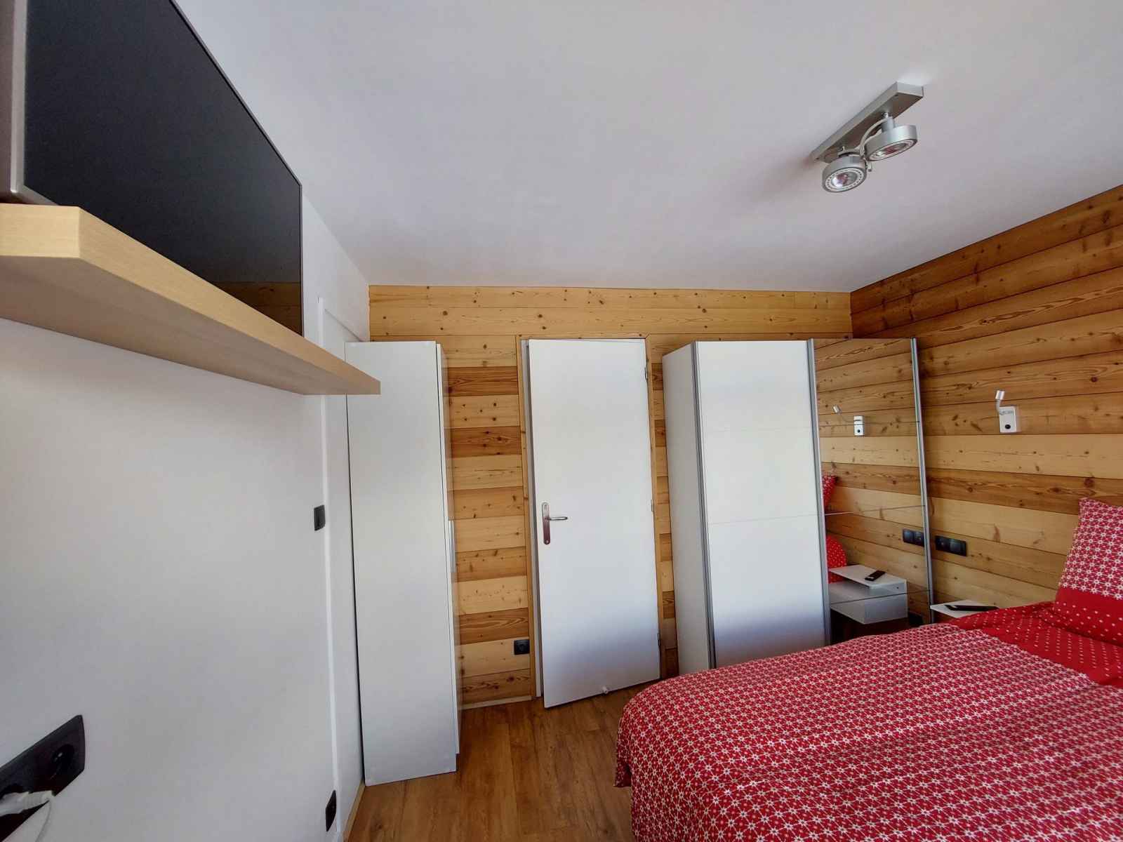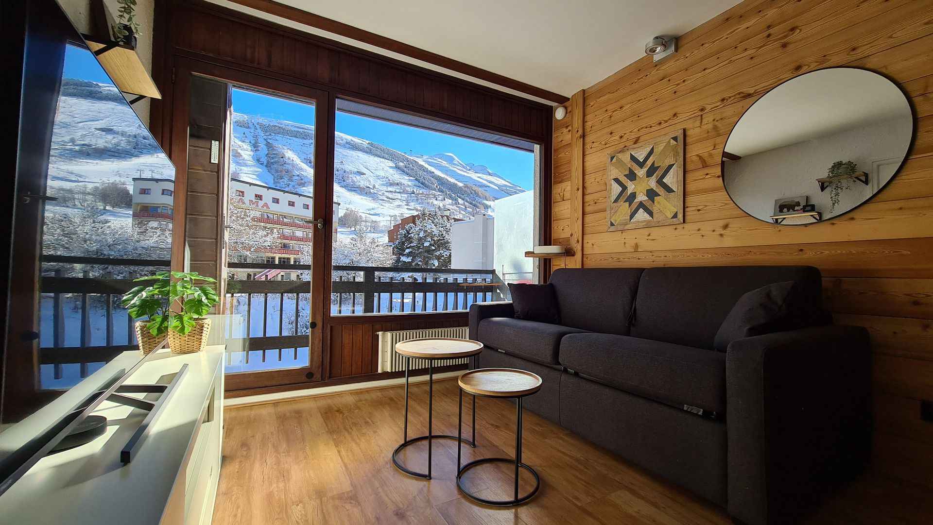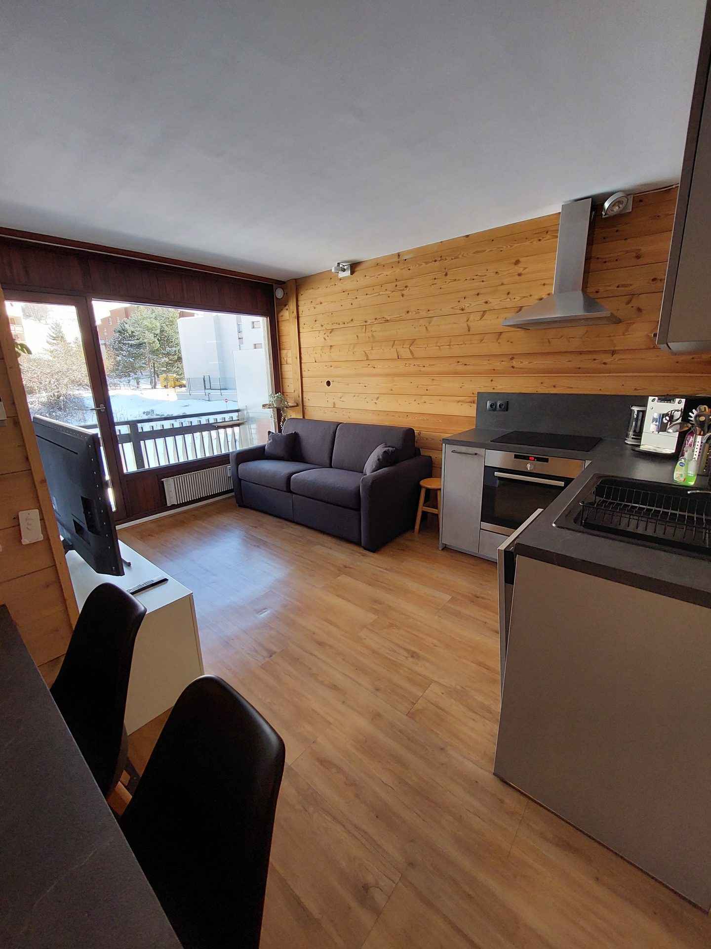 congélateur, lave-vaisselle, four, cafetière, bouilloire, grille-pain, appareil à raclette. Couchages : - Chambre 1 : 1 lit double (200cm x160cm) avec télévision. - Séjour : 1 canapé convertible Sanitaires : Salle de bain avec douche WC séparés. Divers : Casier à ski Lave-Linge Wifi Volets roulants électriques Animaux interdits Accès au parking collectif de l'immeuble, place non garantie Le linge de lit, le linge de maison, les serviettes, le wifi ainsi que le ménage de fin de séjour ne sont pas inclus (à réserver au plus tard le jour de votre arrivée et sous réserve de disponibilité).