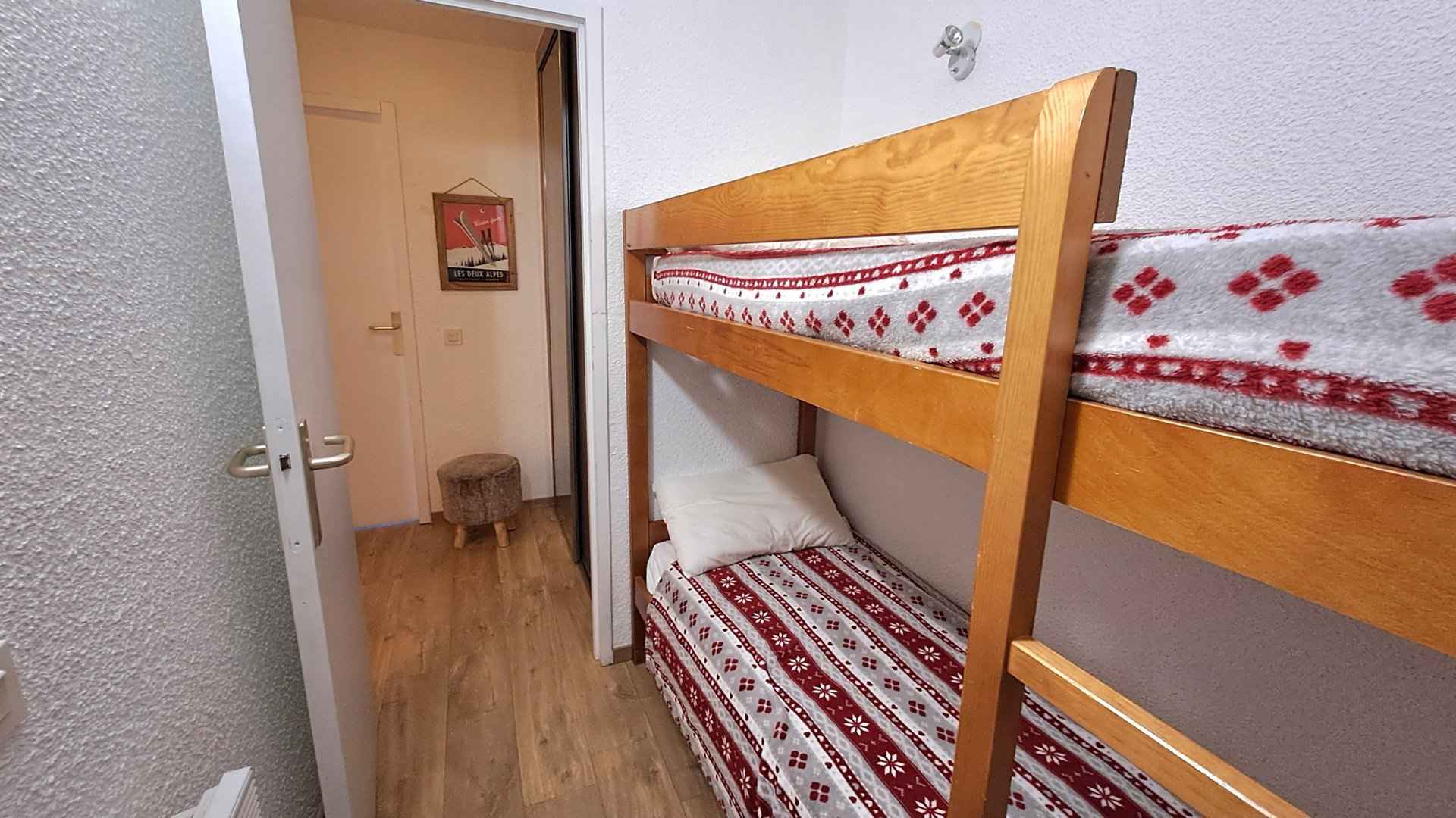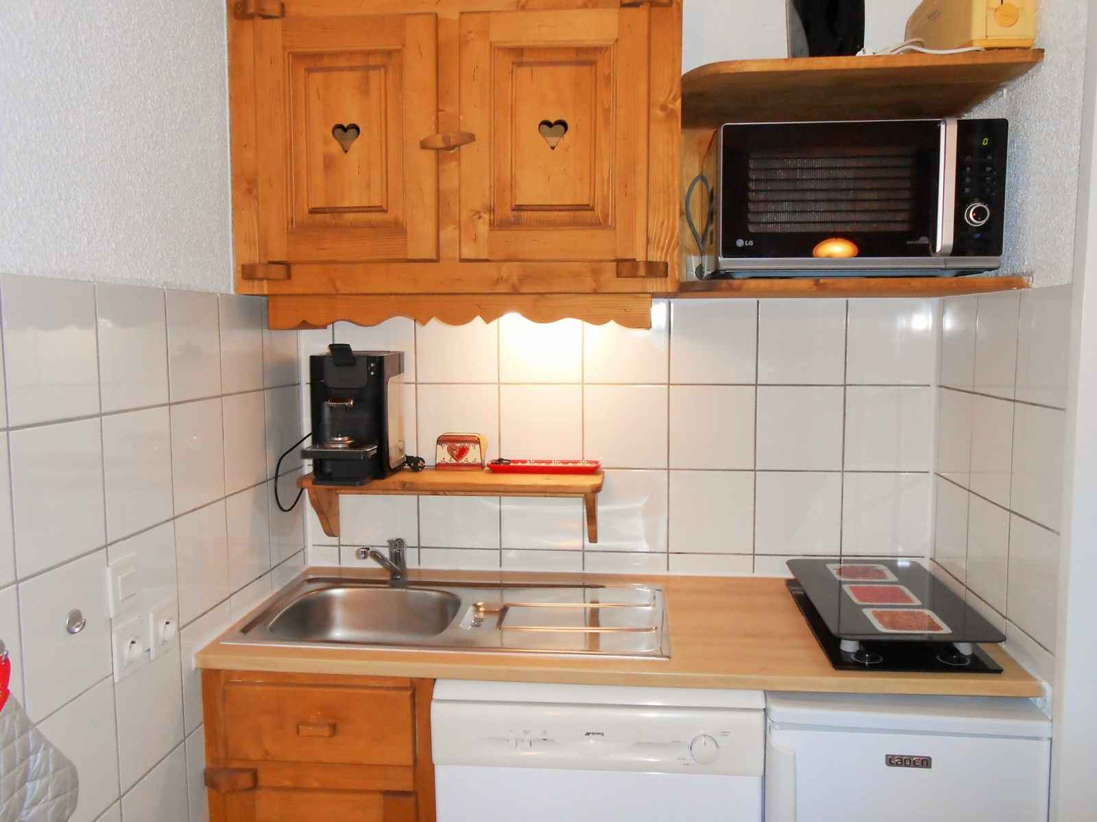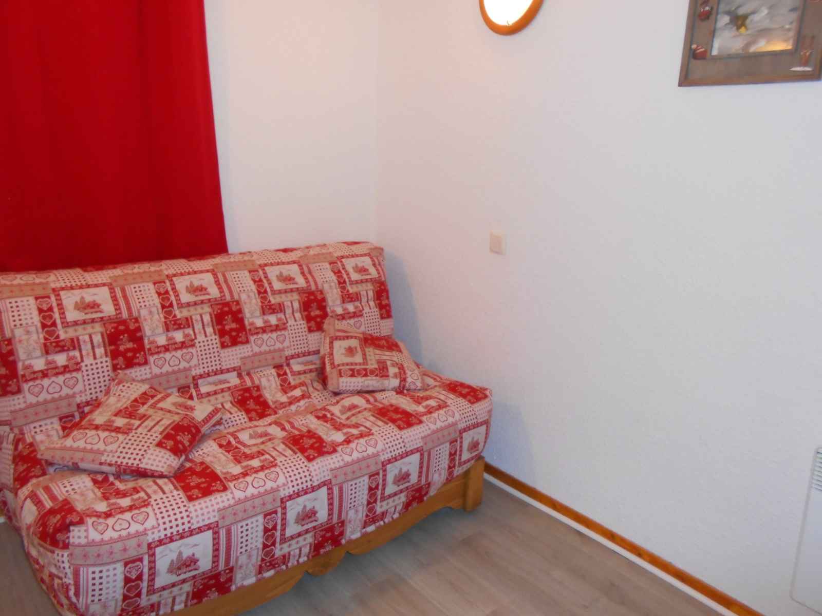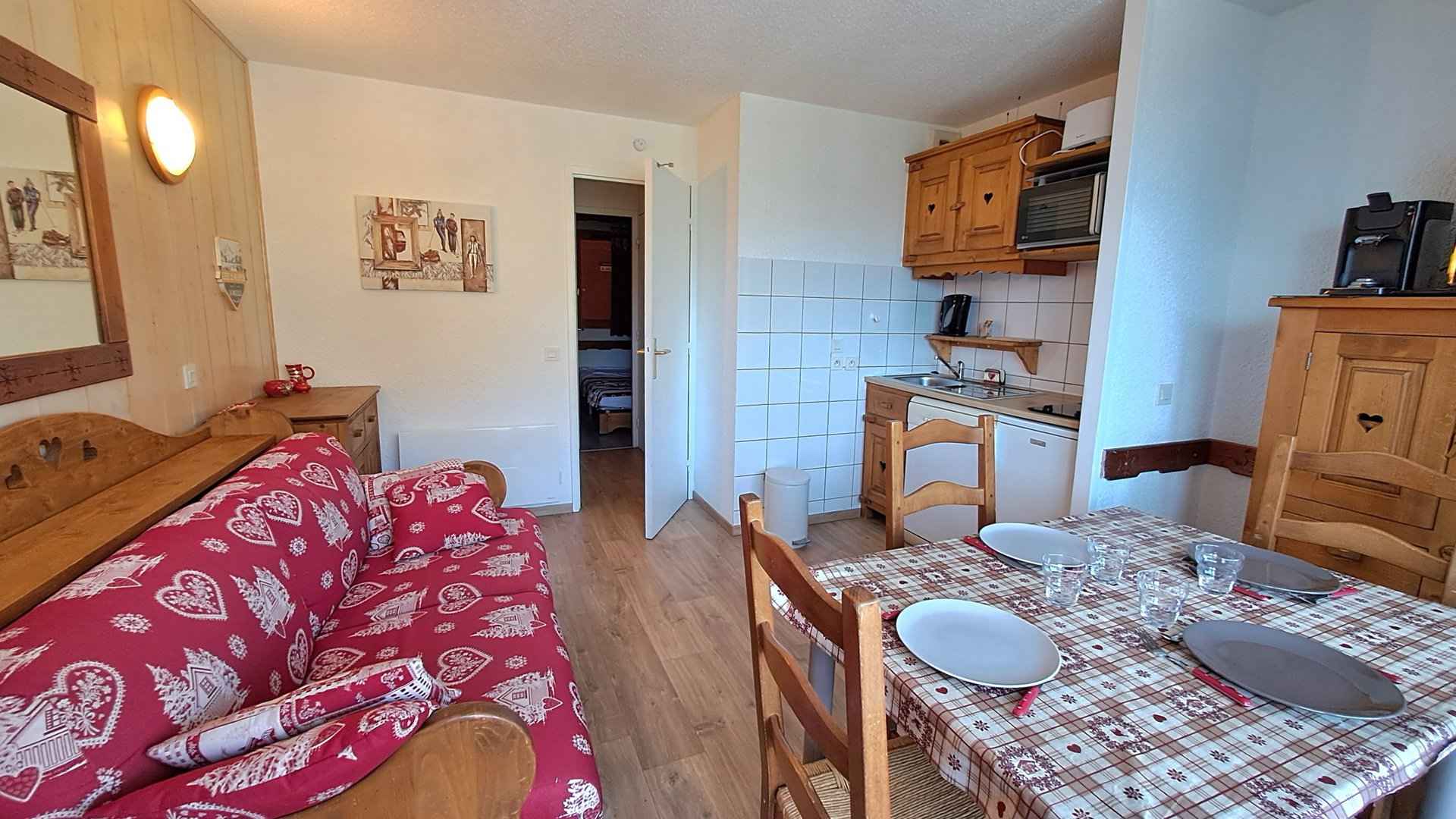 sol Cuisine : ouverte sur le séjour. Equipements : 2 plaques vitrocéramiques, micro-onde, réfrigérateur, lave-vaisselle, cafetière, bouilloire, grille-pain. Couchages : - Chambre : 1 lit double (140x190) - Séjour : 1 canapé convertible (lit double : 140x190) Coin nuit : 2 lits simples superposés (70x190) Couchage supérieur déconseillé aux – de 6 ans Le coin nuit est situé dans le couloir séparé du salon par une porte. Sanitaires : Salle de bain avec baignoire WC séparés. Divers : Casier à ski Place de parking privative couverte, pour voiture standard Animaux interdits Le linge de lit, le linge de maison, les serviettes, le wifi ainsi que le ménage de fin de séjour ne sont pas inclus (à réserver au plus tard le jour de votre arrivée et sous réserve de disponibilité).