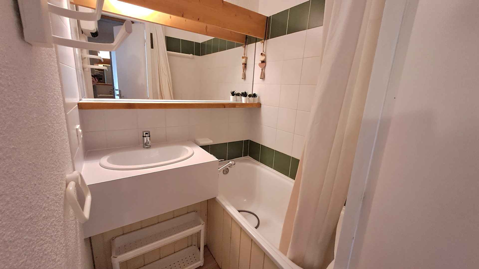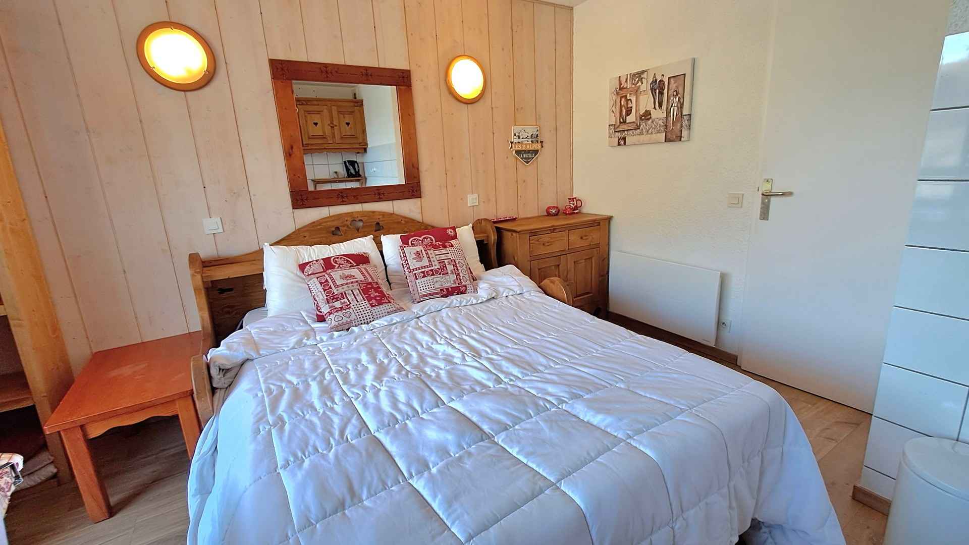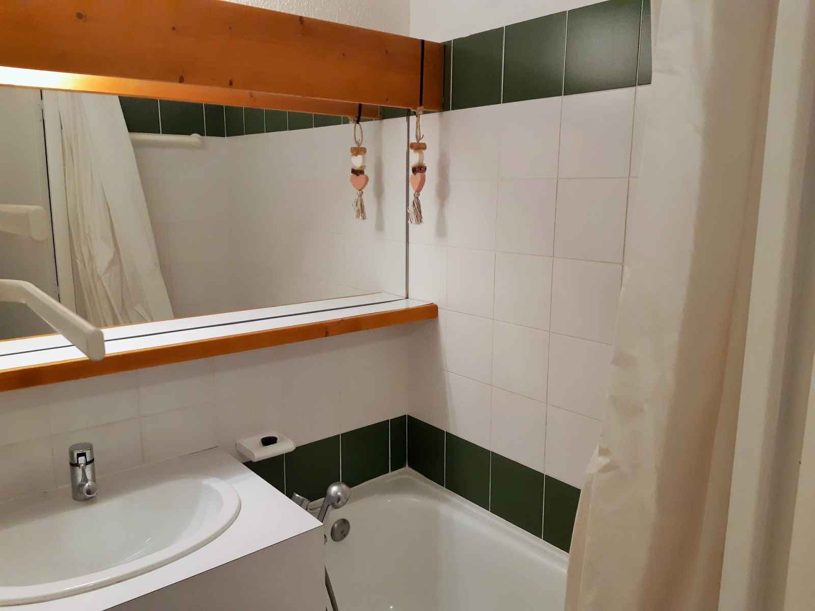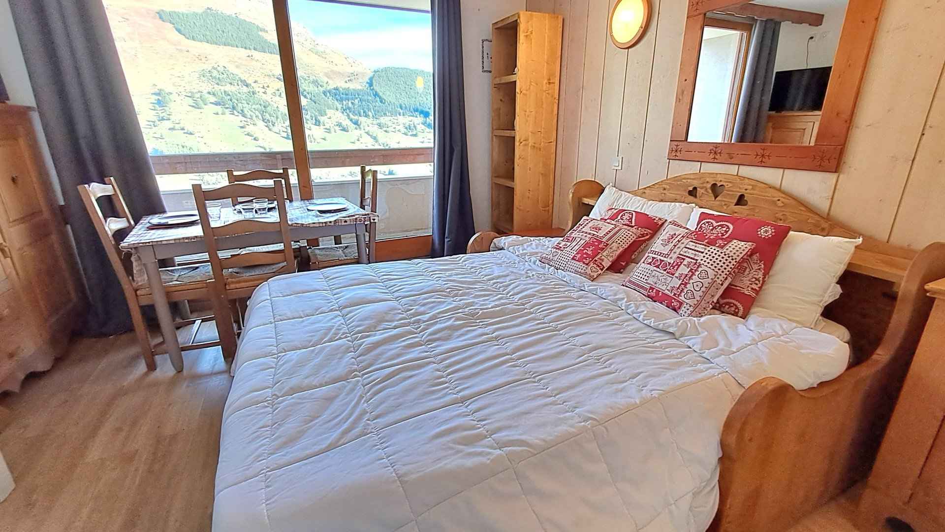 sol Cuisine : ouverte sur le séjour. Equipements : 2 plaques vitrocéramiques, micro-onde, réfrigérateur, lave-vaisselle, cafetière, bouilloire, grille-pain. Couchages : - Chambre : 1 lit double (140x190) - Séjour : 1 canapé convertible (lit double : 140x190) Coin nuit : 2 lits simples superposés (70x190) Couchage supérieur déconseillé aux – de 6 ans Le coin nuit est situé dans le couloir séparé du salon par une porte. Sanitaires : Salle de bain avec baignoire WC séparés. Divers : Casier à ski Place de parking privative couverte, pour voiture standard Animaux interdits Le linge de lit, le linge de maison, les serviettes, le wifi ainsi que le ménage de fin de séjour ne sont pas inclus (à réserver au plus tard le jour de votre arrivée et sous réserve de disponibilité).