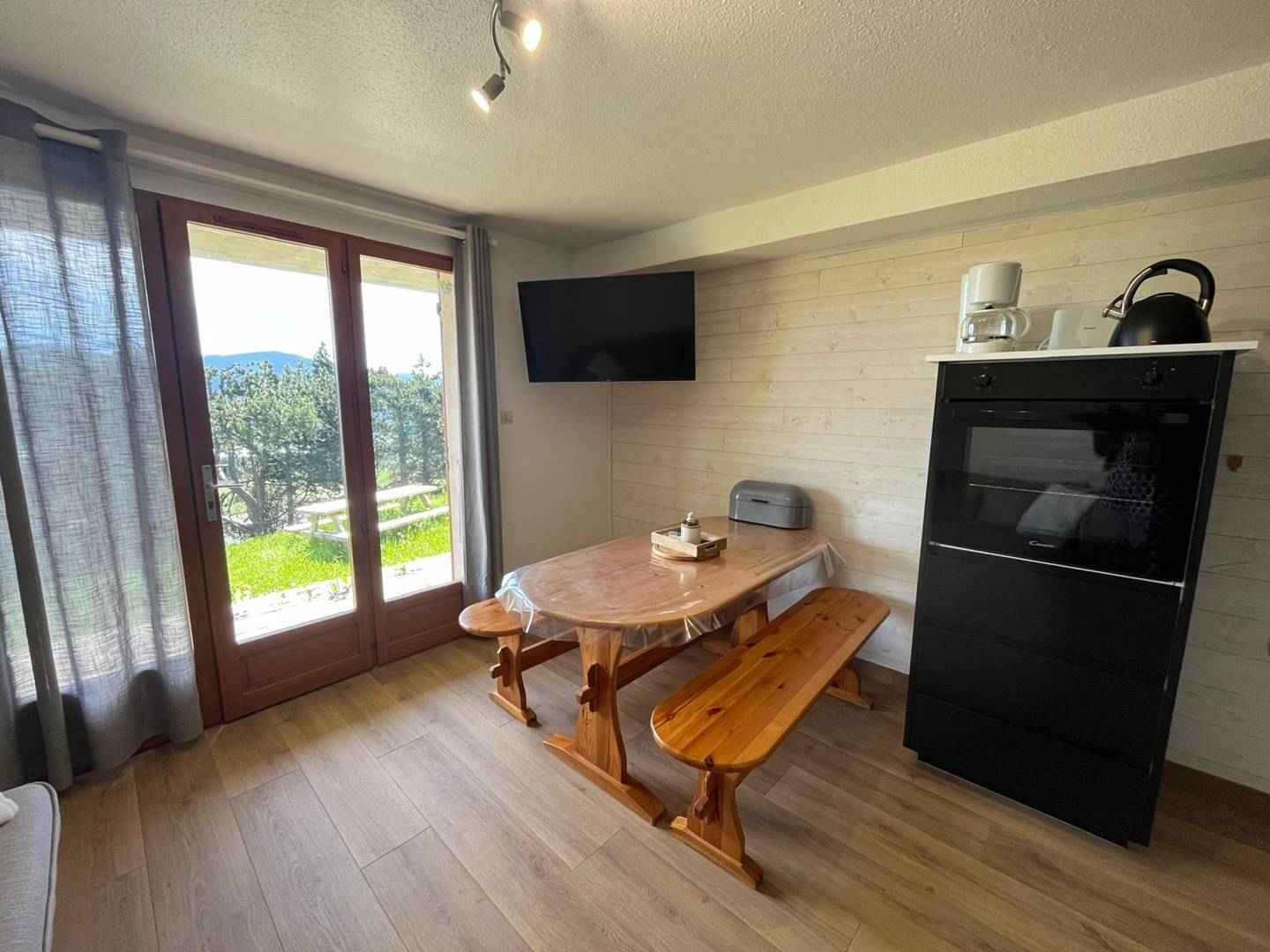 appartement entièrement rénové avec cuisine équipée d'une lave vaisselle, four, micro-onde, deux plaques inductions.
