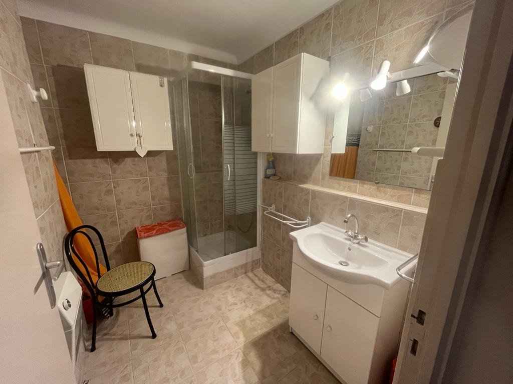 UNE SALLE D'4EAU AVEC CABINE DOUCHE ET LAVABO