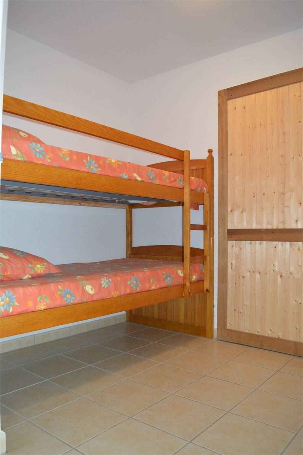 en entrant le coin cabine meublé de deux lits superposés en 90 cm