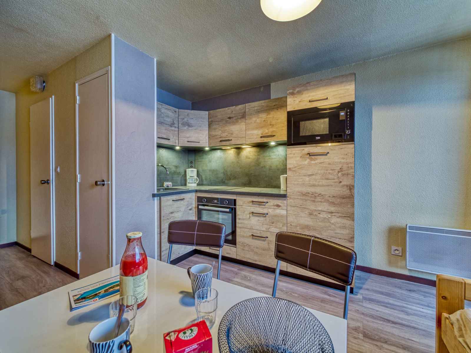 "argousier 134 b", apt 2 pièces 26 m2 au 4ème étage. aménagement agréable: séjour/salle à manger avec 1 lit gigogne (2 pers. 2 x 80 cm, longueur 190 cm), tv (écran plat). 1 petite chambre avec 1 x 2 lits superposés (80 cm, longueur 190 cm). coin cuisine (2 plaques de cuisson, four, bouilloire électrique, micro-ondes, cafetière