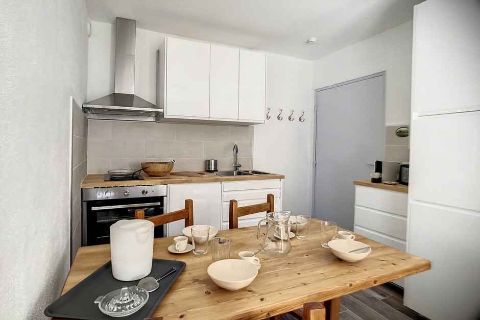 indépendant. Cuisine ouverte sur séjour avec 2 plaques, lave vaisselle, four micro ondes, four traditionnel, grand frigo. Appartement non fumeur. Animaux non admis. Appartement équipé de couettes et de couvertures WIFI Station payant (sous réserve de couverture de réseau)