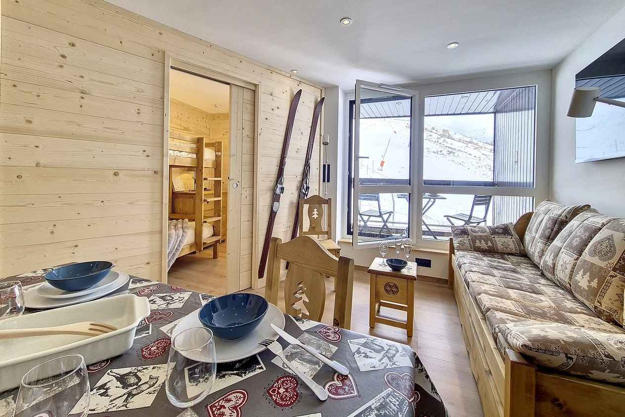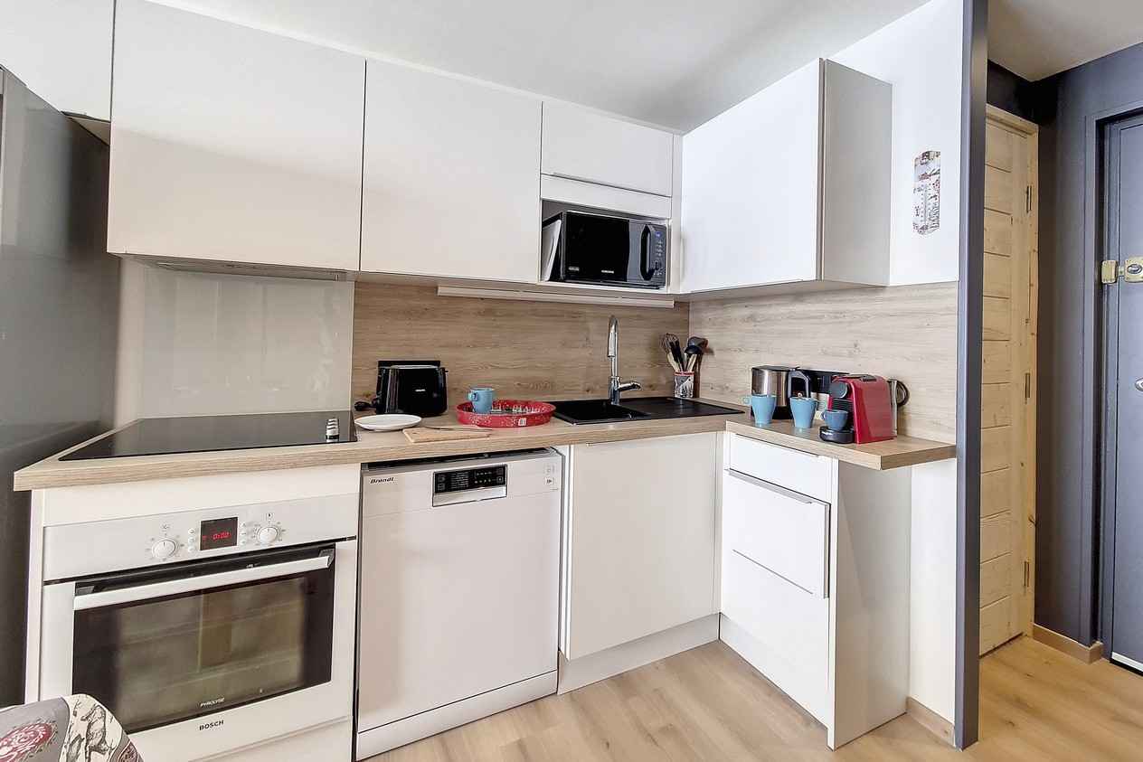 appartement deux pièces de 28.50 m² équipé pour 4 personnes, situé au 4ème étage avec un balcon exposé sud-est.