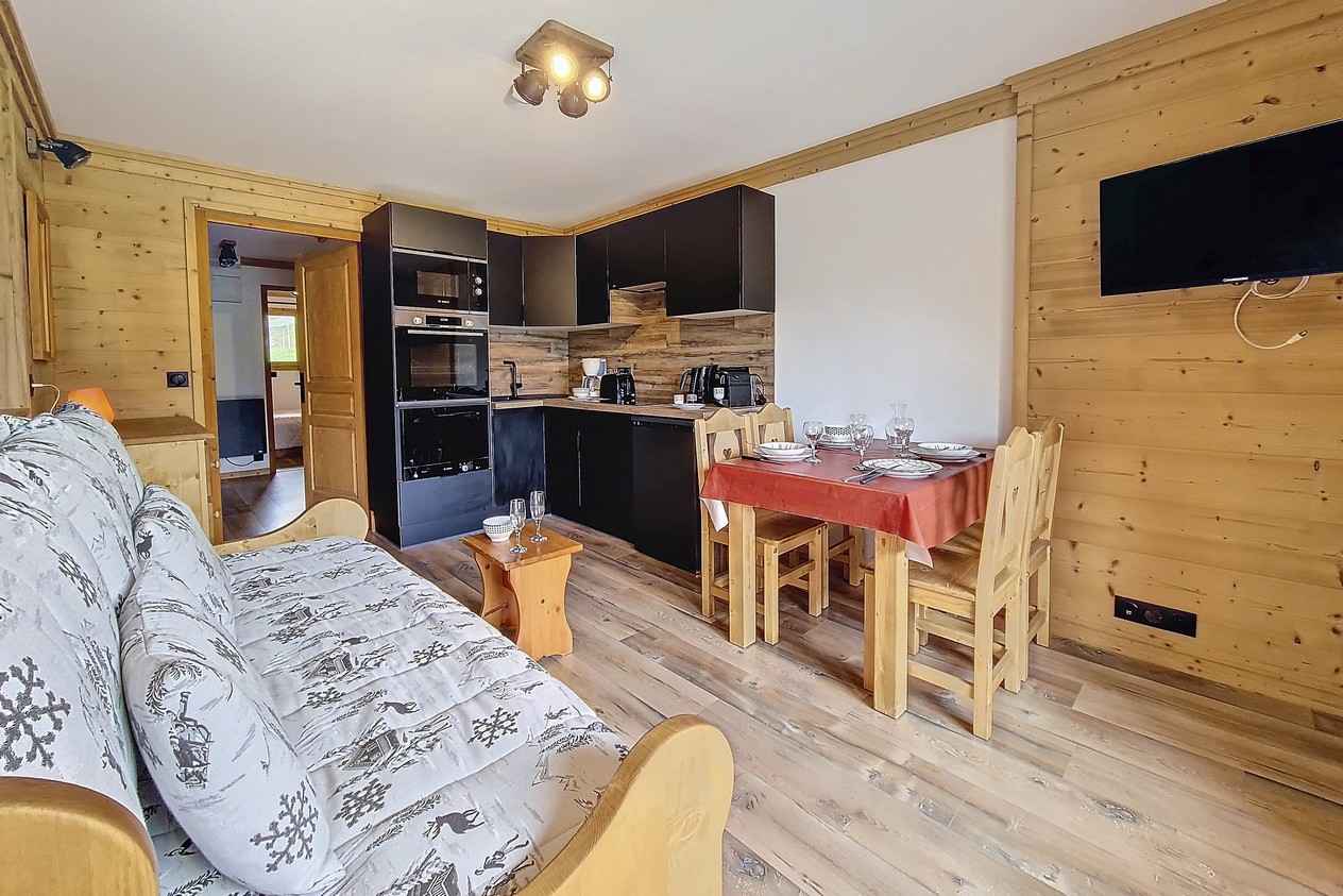 Très bien situé , réellement ski aux pieds , appartement un peu trop petit pour 4 et lits très moyennement confortables !!!