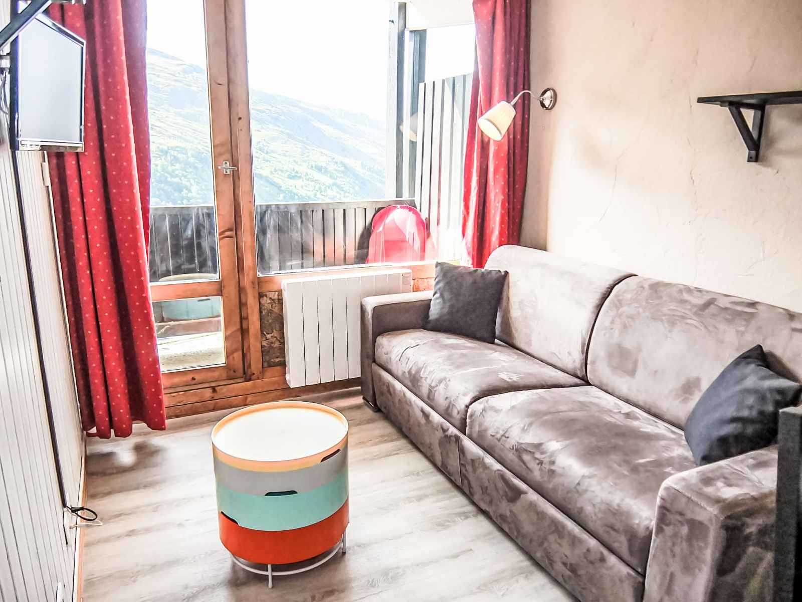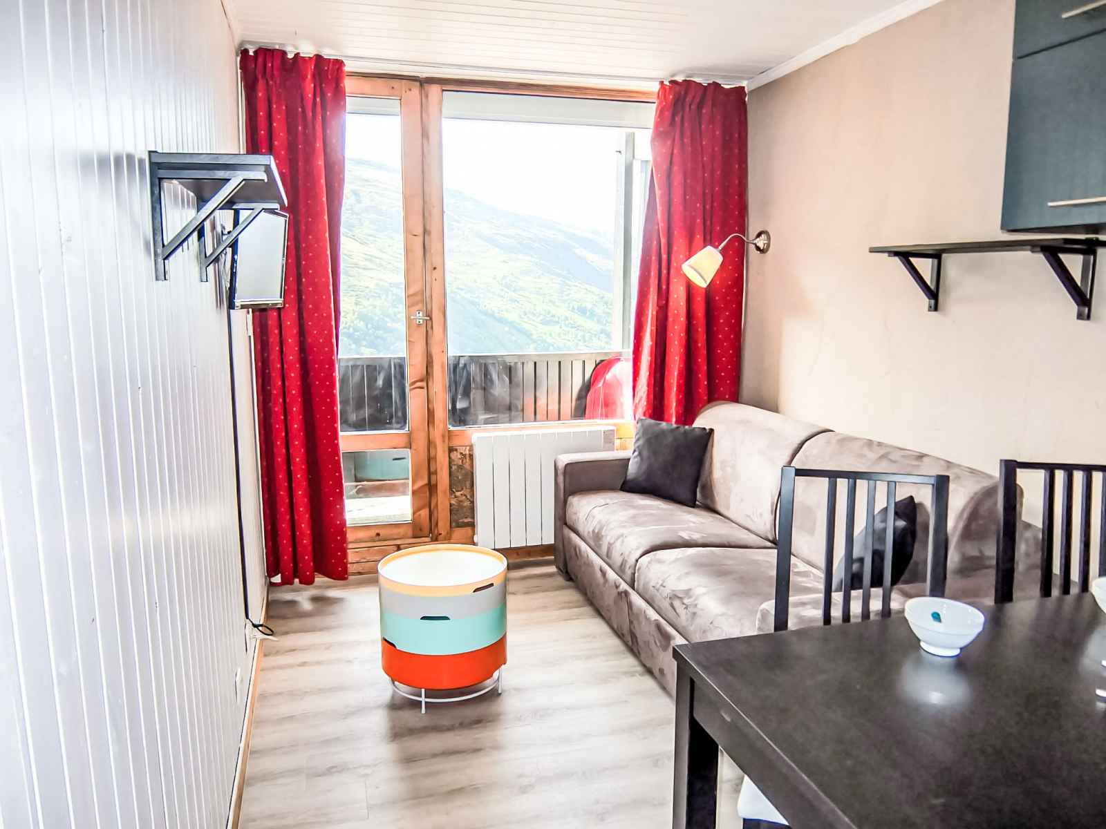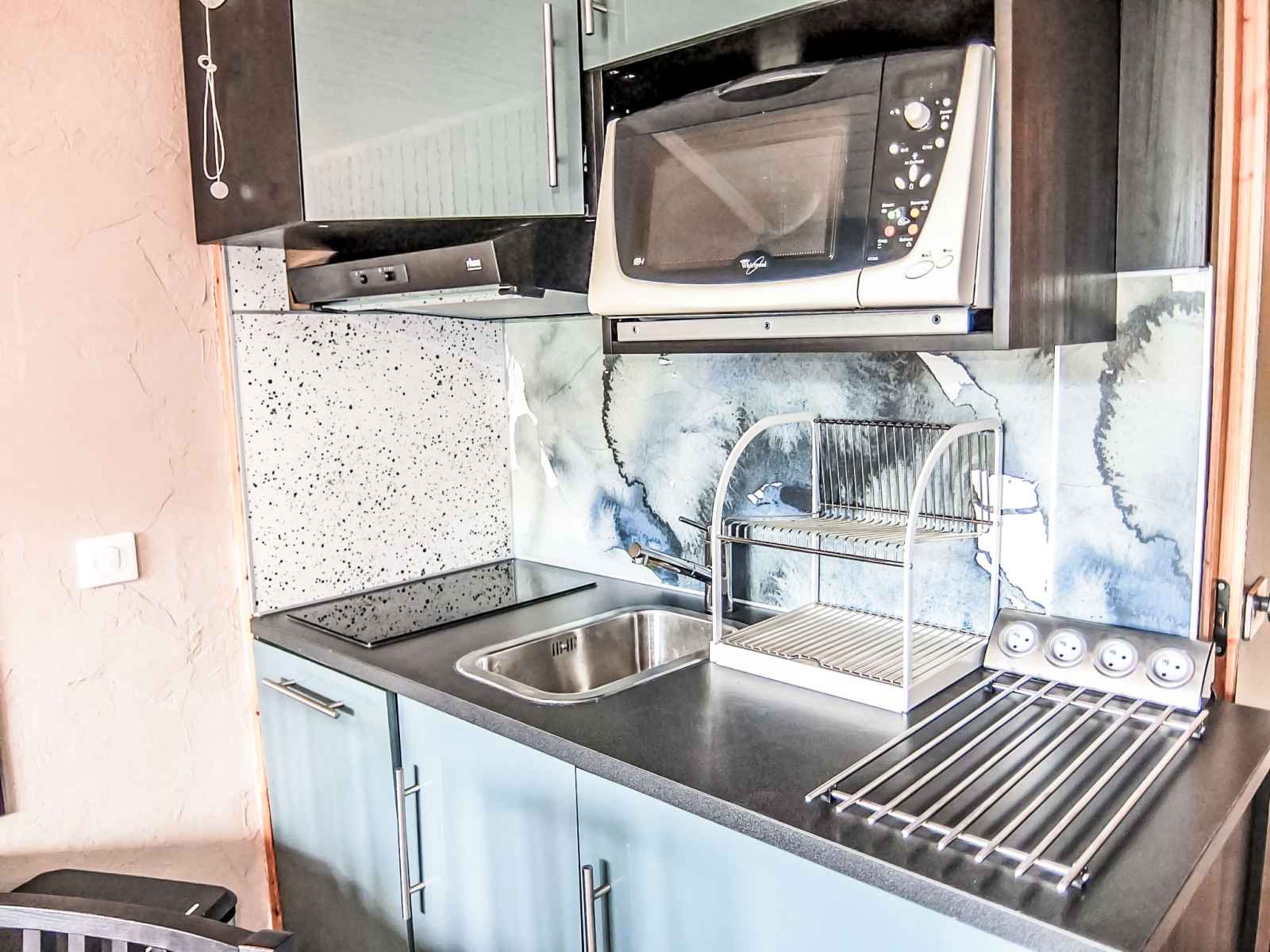 "villaret 604" studio 22 m2 au 6ème étage. rénové, aménagement agréable: séjour/salle à manger avec 1 divan-lit double (160 cm, longueur 190 cm), tv (écran plat). sortie sur le balcon. cabine avec dressing avec 1 x 2 lits superposés (80 cm, longueur 190 cm). coin cuisine (lave-vaisselle, 2 plaques vitrocéramiques, grille-pain,