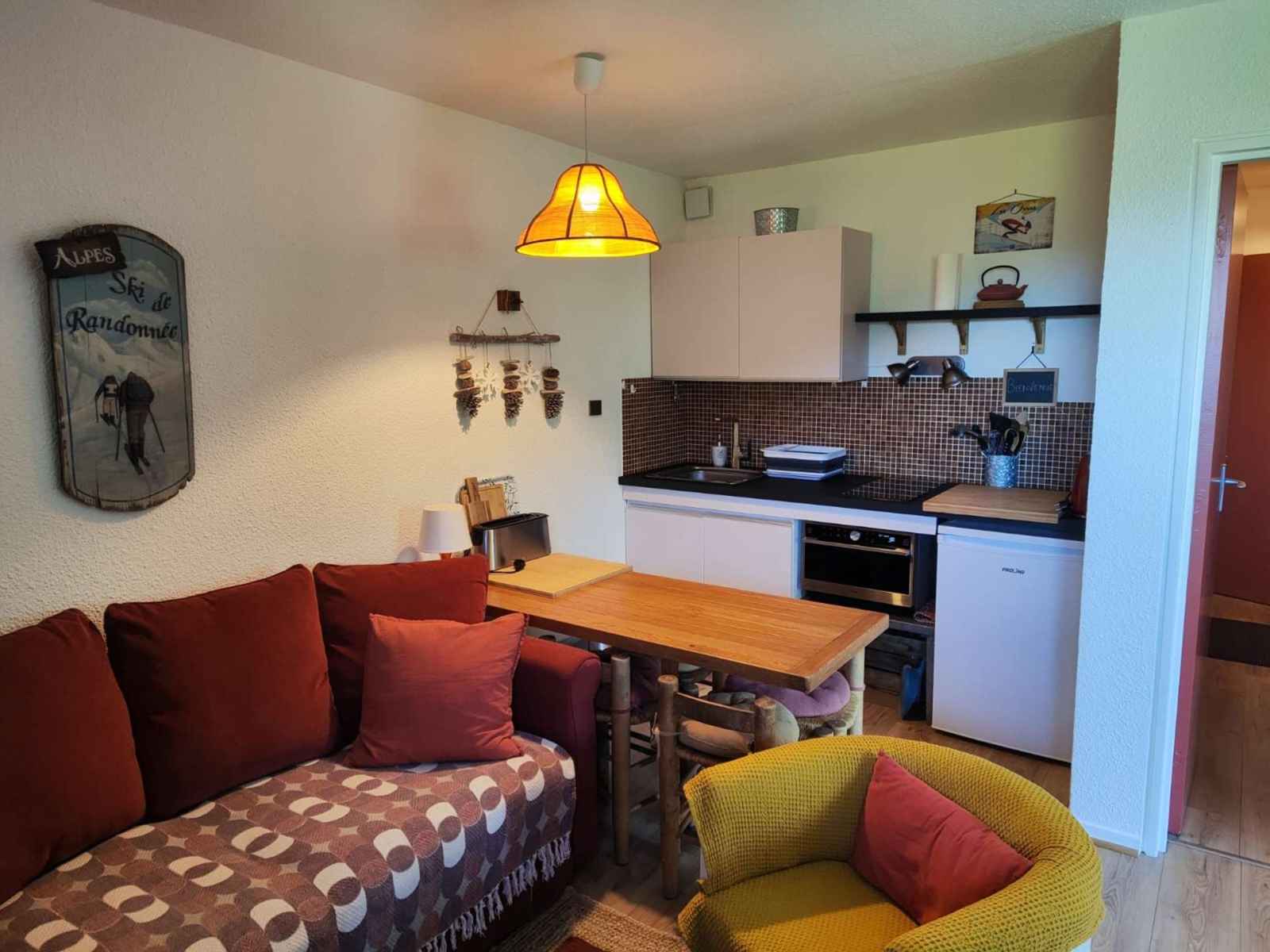Jonc de mer au sol du séjour. Belles prestations. Balcon exposition Ouest. Départ skis aux pieds de la résidence. Animaux non acceptés et appartement non fumeur.