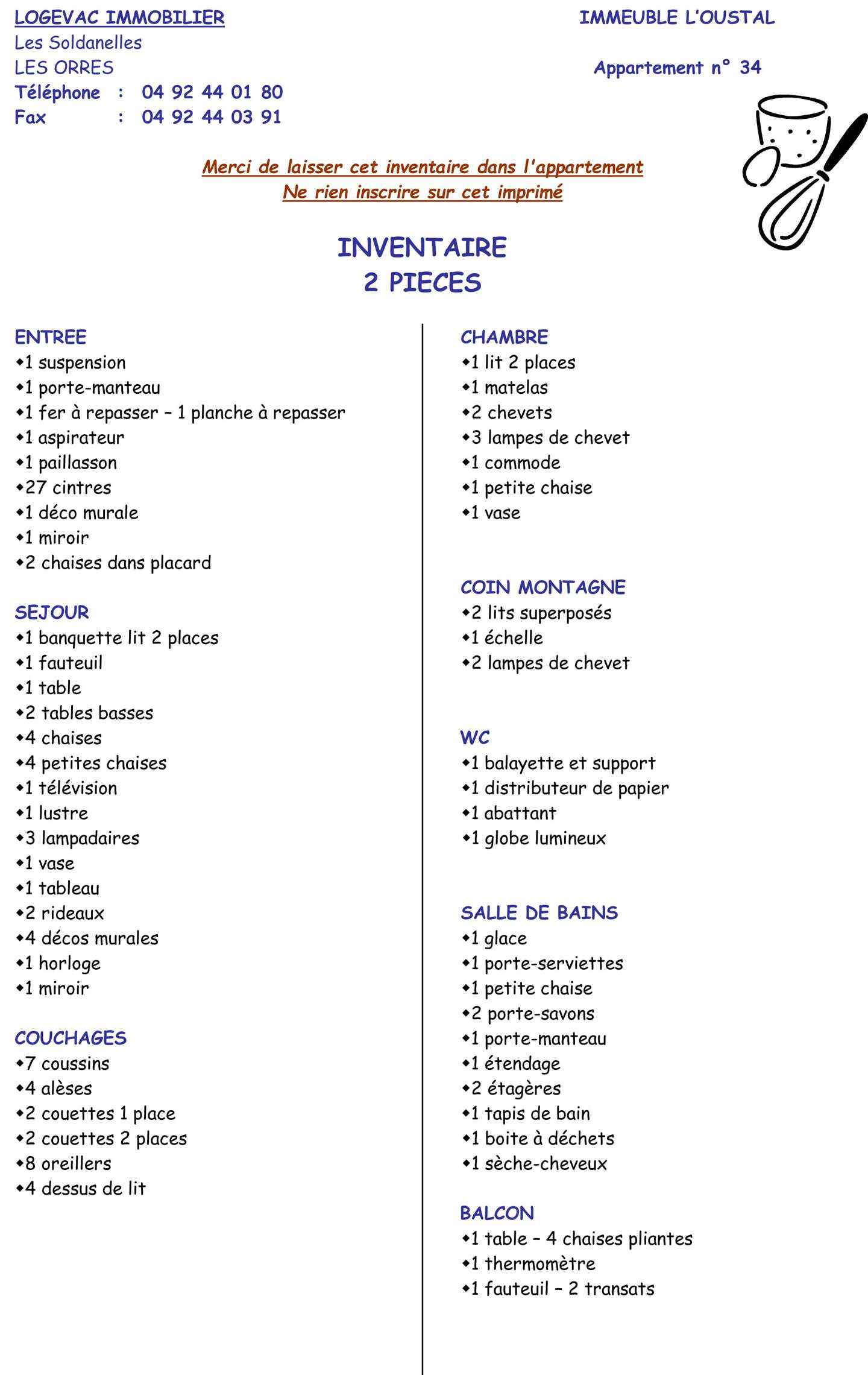 • Equipements : Balcon, Four, Jonc de mer, Parquet, réfrigérateur, Box à Skis, Chauffage Electrique, Lave linge, Télévision