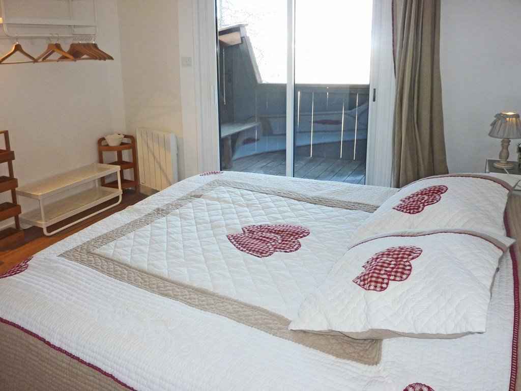 sa salle d'eau avec WC et son balcon vue sur la piste. Superbe terrasse exposition Sud/Ouest offrant une magnifique vue sur la vallée. A deux pas du centre de la station et départ skis aux pieds. Appartement équipé avec sèche linge, lave ligne et Wifi gratuit.