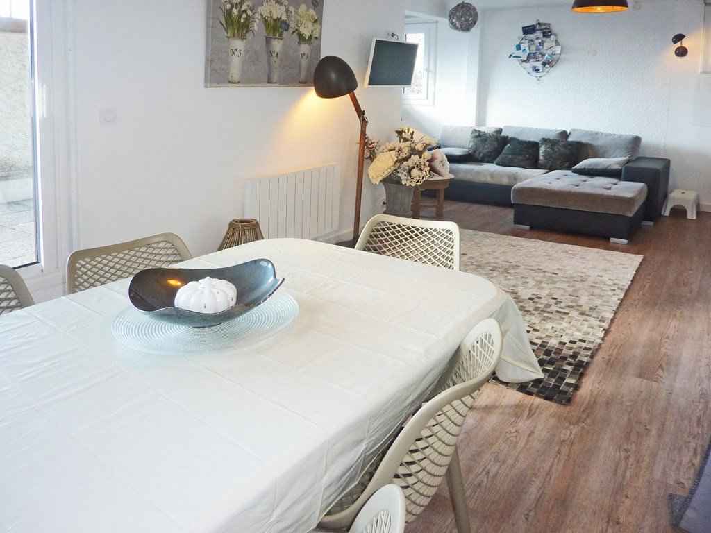 Très bel appartement équipé pour 8 personnes, en troisième étage, entièrement rénové avec soin comprenant une entrée, un coin montagne avec 2x2 lits superposés 2 places avec sa salle d'eau avec wc, un grand séjour avec 1 lit rabattable 2 places, un coin cuisine entièrement équipé, une chambre avec 1 lit 2 places avec télévision et