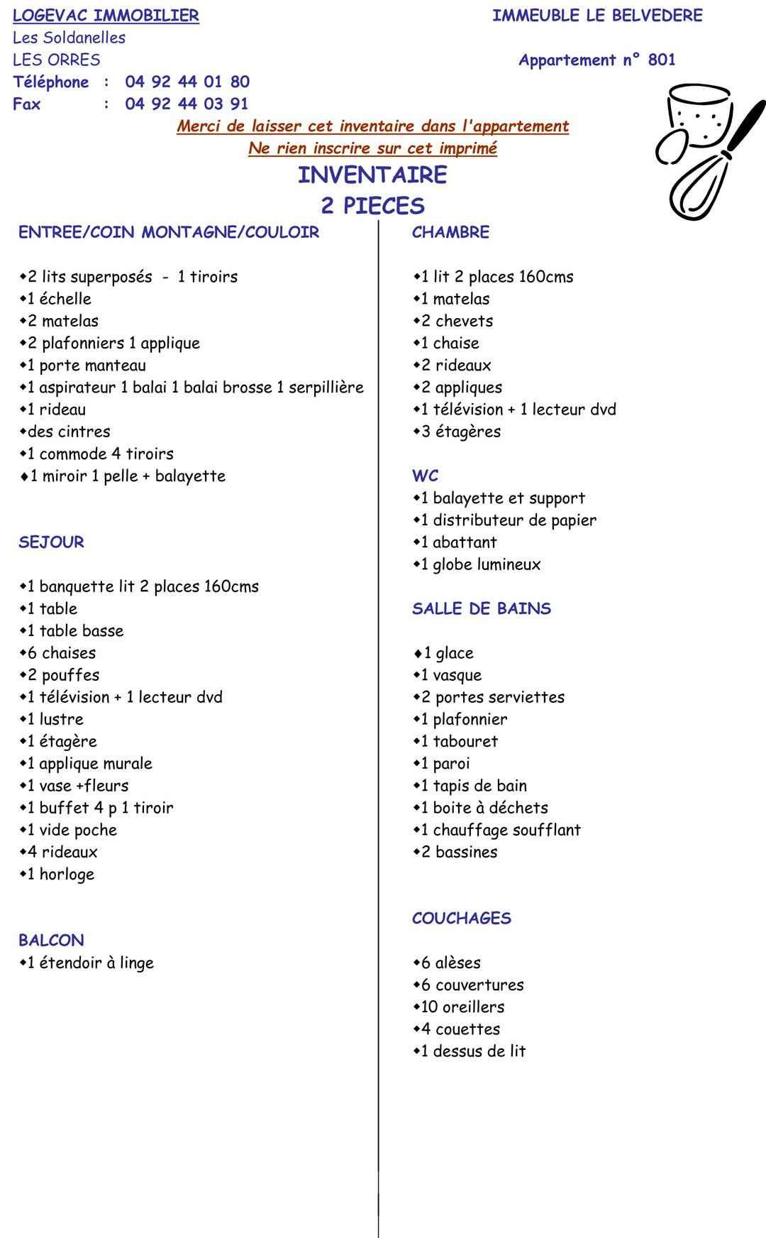 • Equipements : Balcon, Box à Skis, Chauffage Electrique, Four Micro-ondes , Lave vaisselle, Parquet, réfrigérateur, Télévision