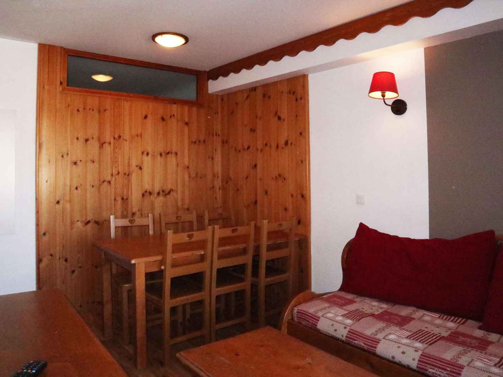 un coin-cuisine, une salle de bains et wc séparés. Balcon exposition Ouest. Box à skis dans la résidence. Départ et retour skis aux pieds.