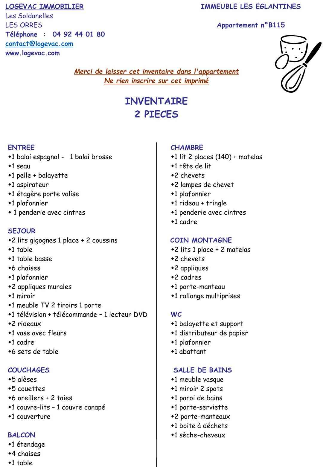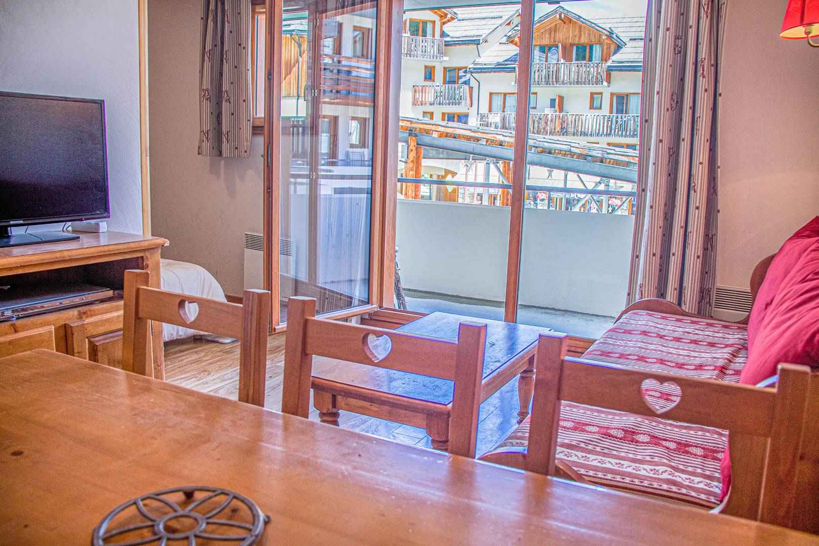 • Equipements : Balcon, Box à Skis, Chauffage Electrique, Lave vaisselle, Lino, Micro onde, Télévision