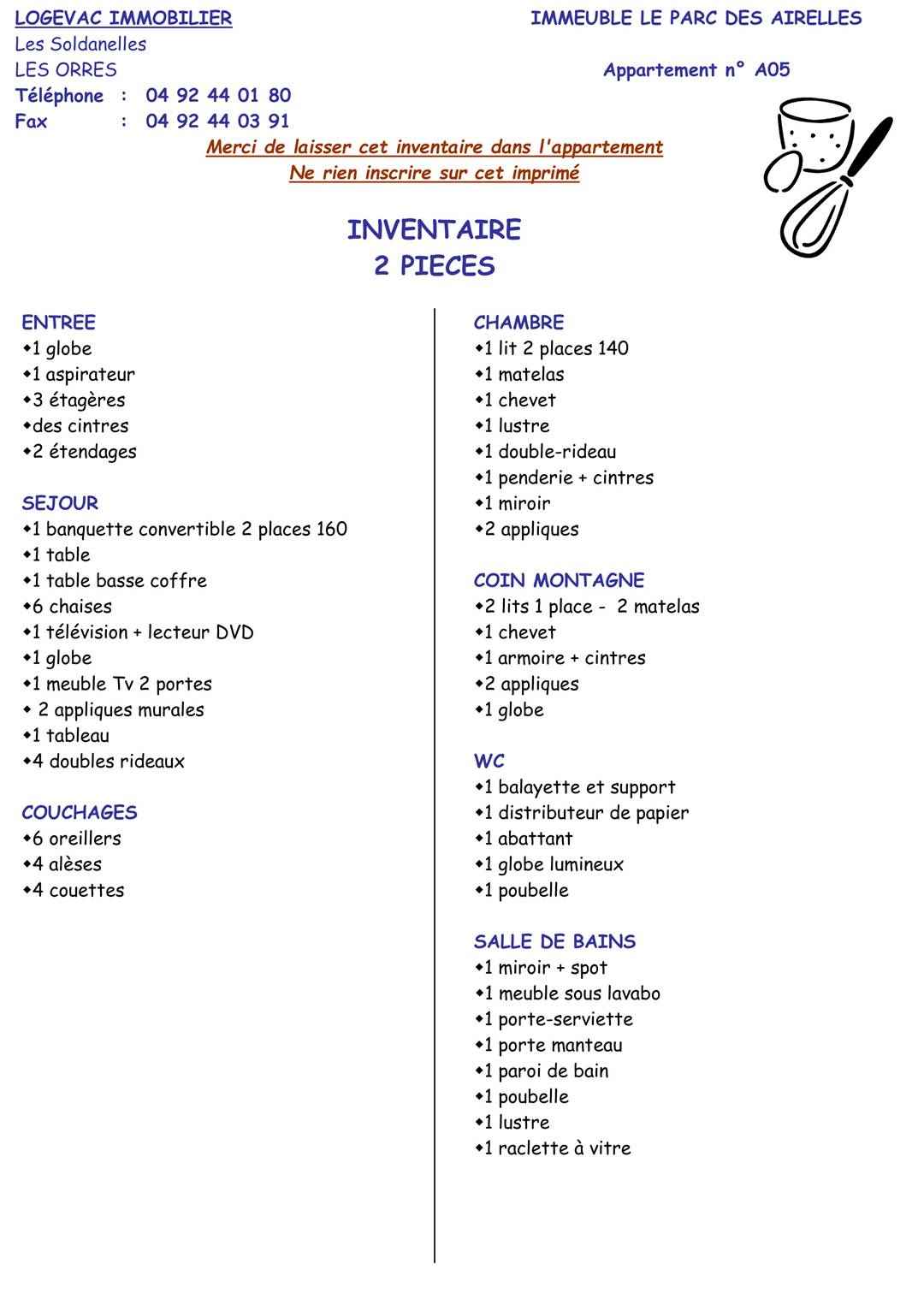 La remise des clés se fera à l'agence LOGEVAC située aux Orres 1800 m.