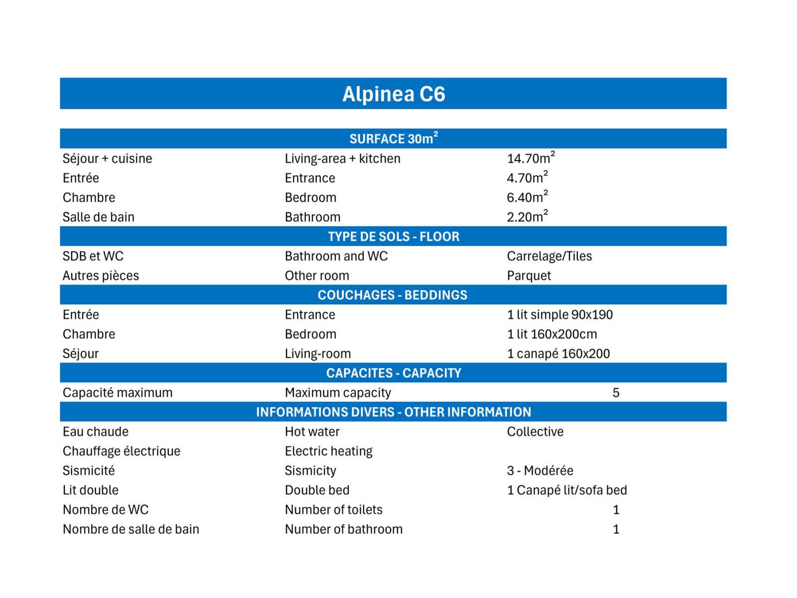- Caution 350 € (CB ou chèque détruit au plus tard 14 jours après votre départ)