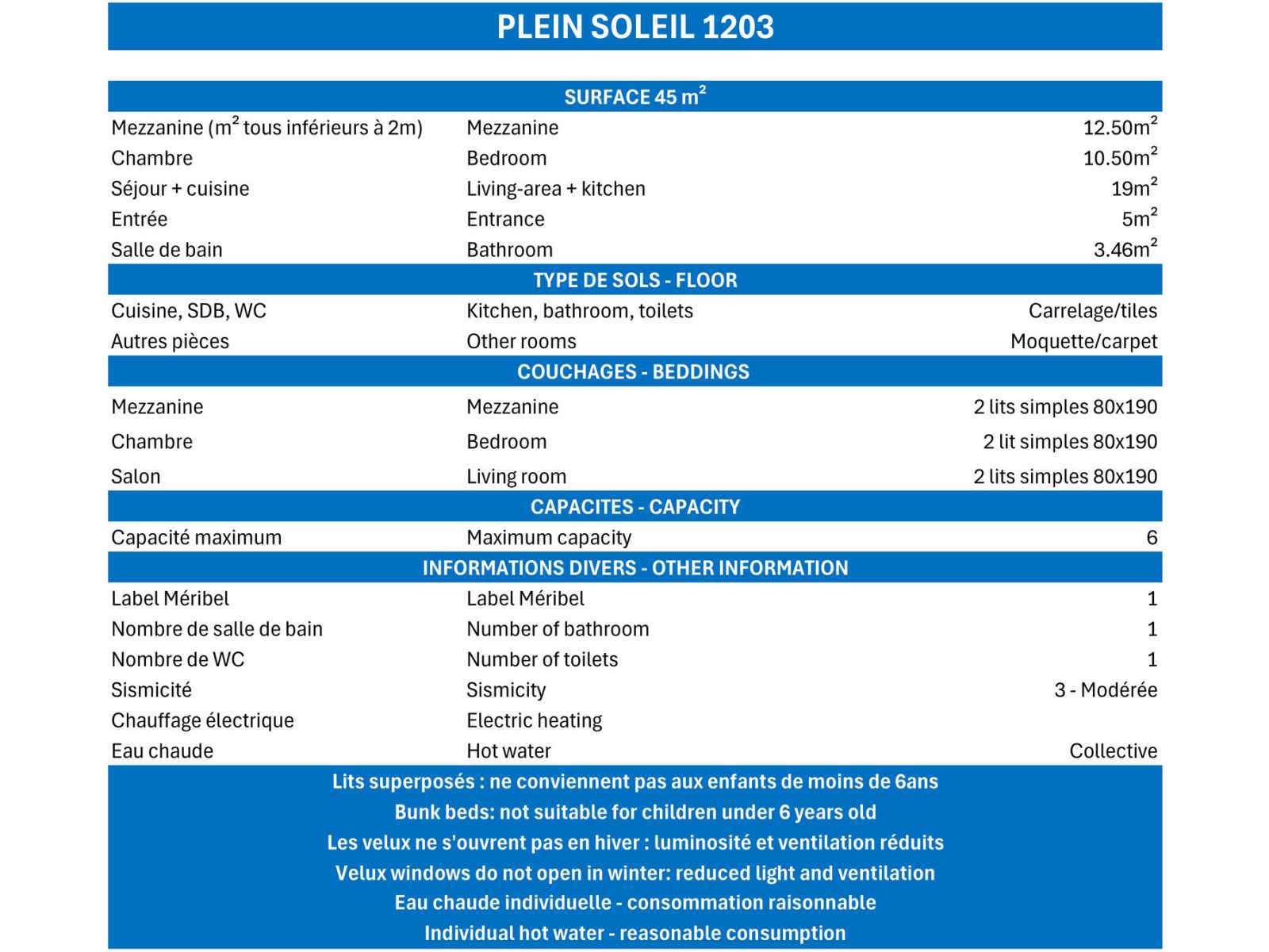 - Caution 500 € (CB ou chèque détruit au plus tard 14 jours après votre départ)