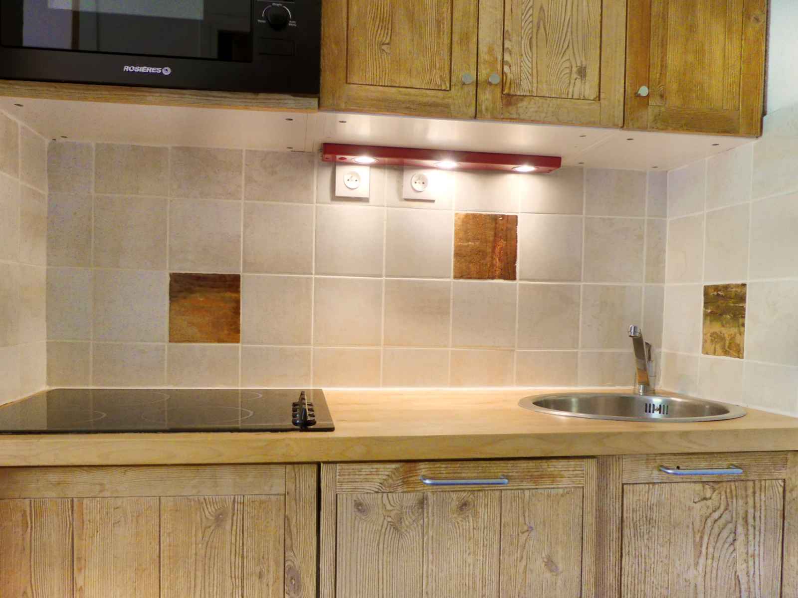 kitchenette ouverte : micro-ondes avec grill, frigidaire, lave-vaisselle, 4 plaques vitro-céramiques, cafetière à filtre,