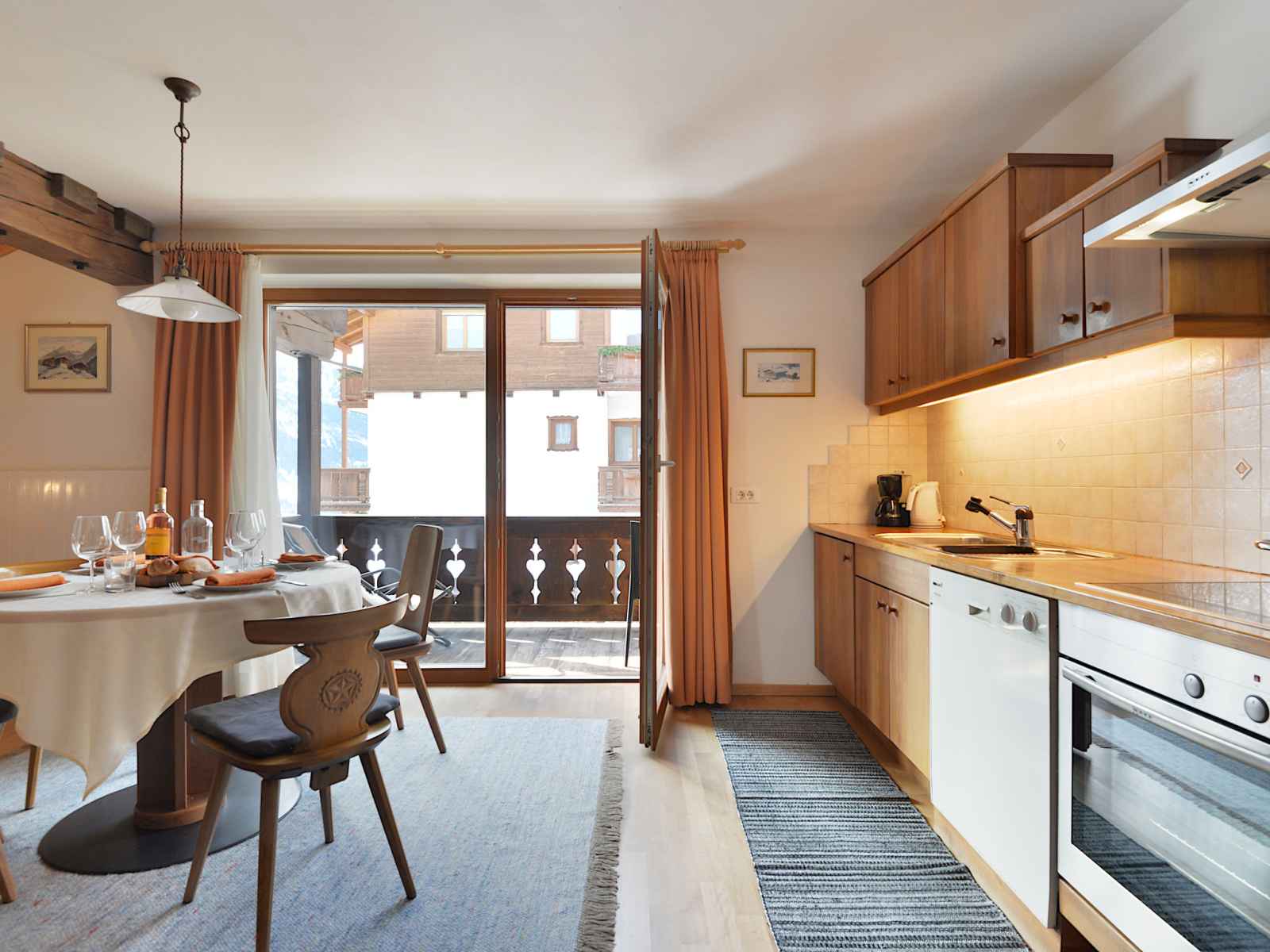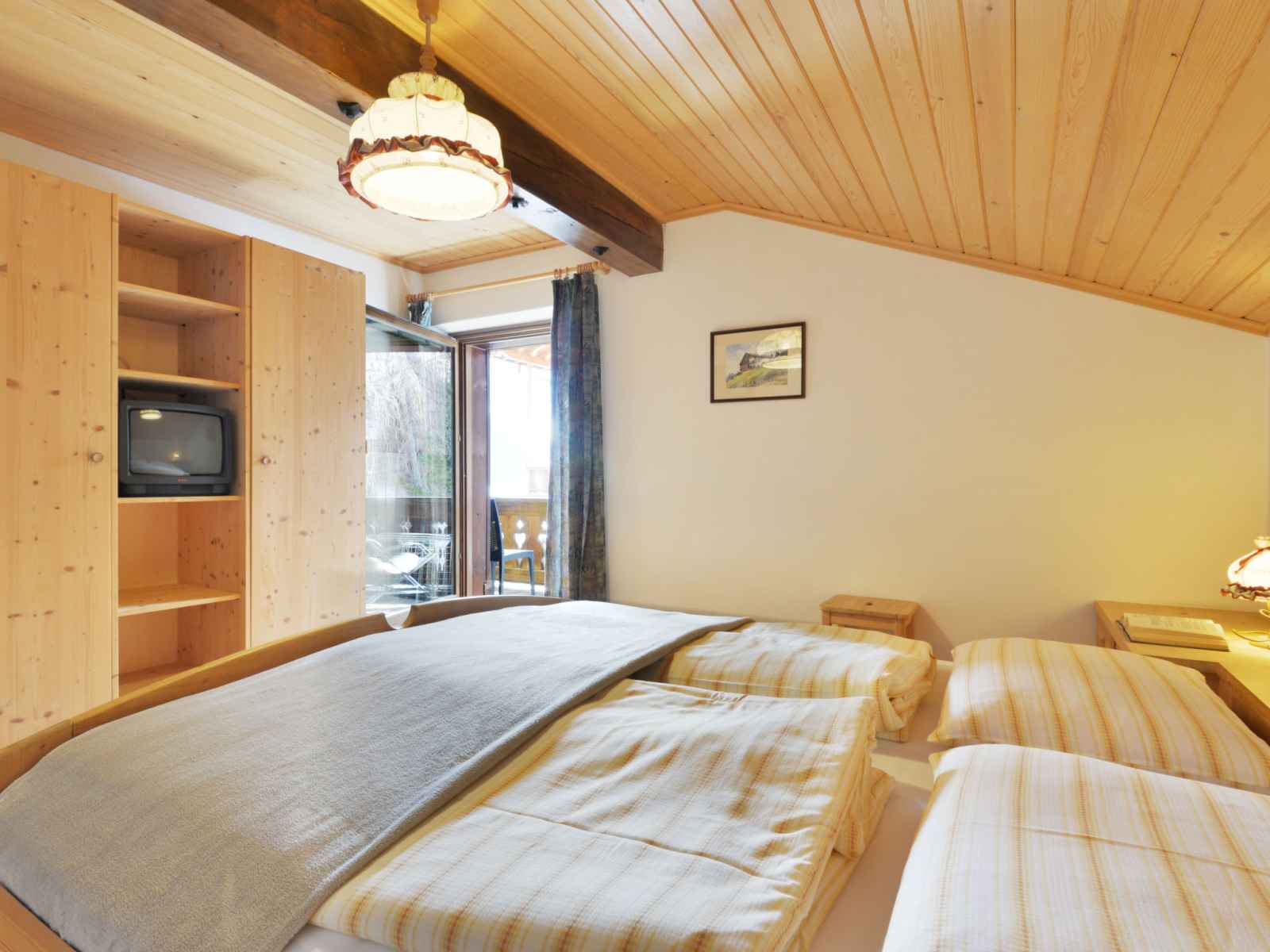 Apt 2 pièces 50 m2 au 2ème étage. aménagement plaisant et avec beaucoup de bois: séjour/chambre à coucher avec 1 divan-lit double, table pour les repas et tv. sortie sur le balcon. 1 chambre double avec tv. cuisine ouverte (four, lave-vaisselle, 4 plaques vitrocéramiques, bouilloire électrique, cafetière électrique). douche/bidet/wc.