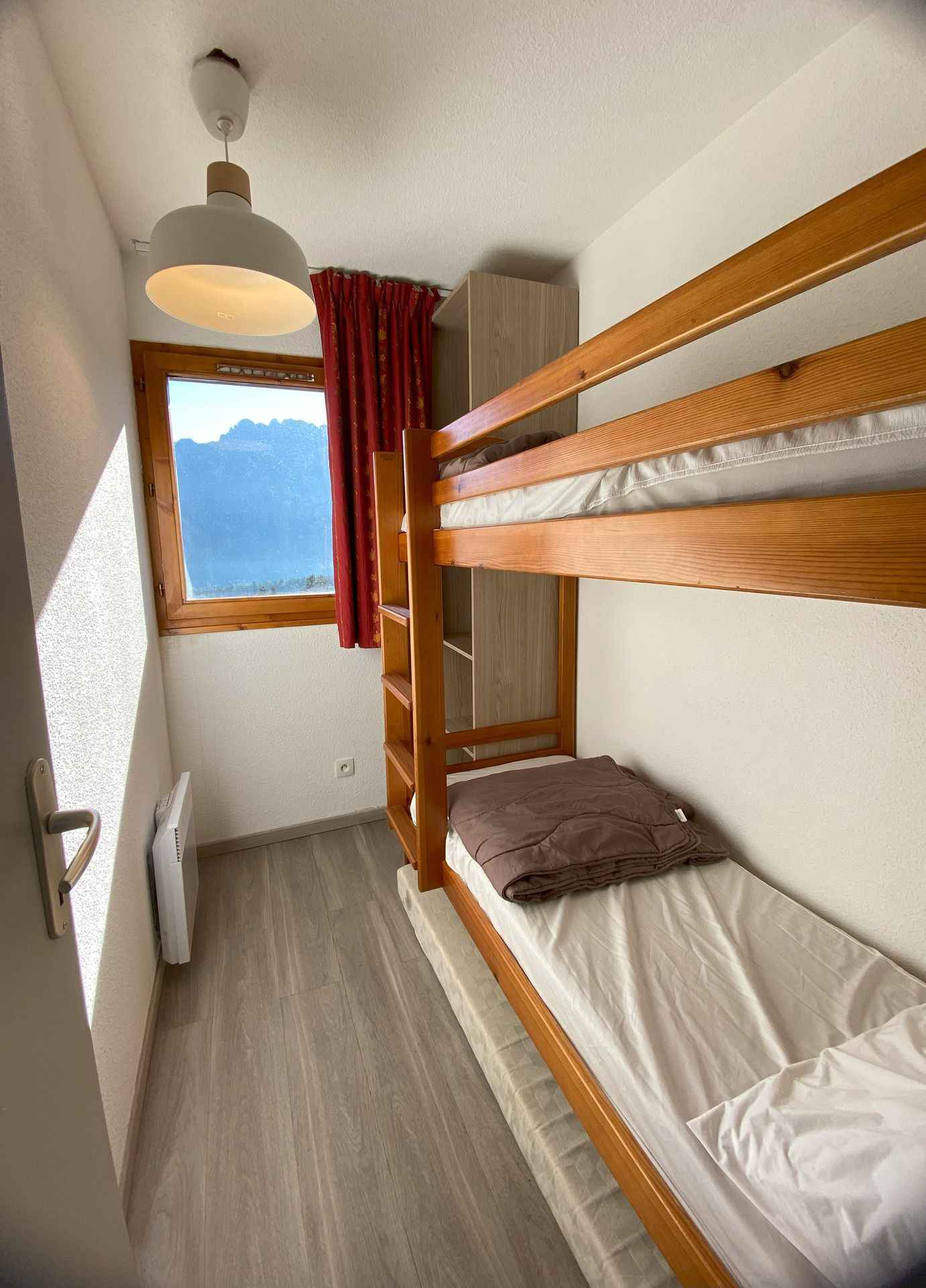 cabine avec 2 lits superposés. chambre avec 1 lit deux personnes.