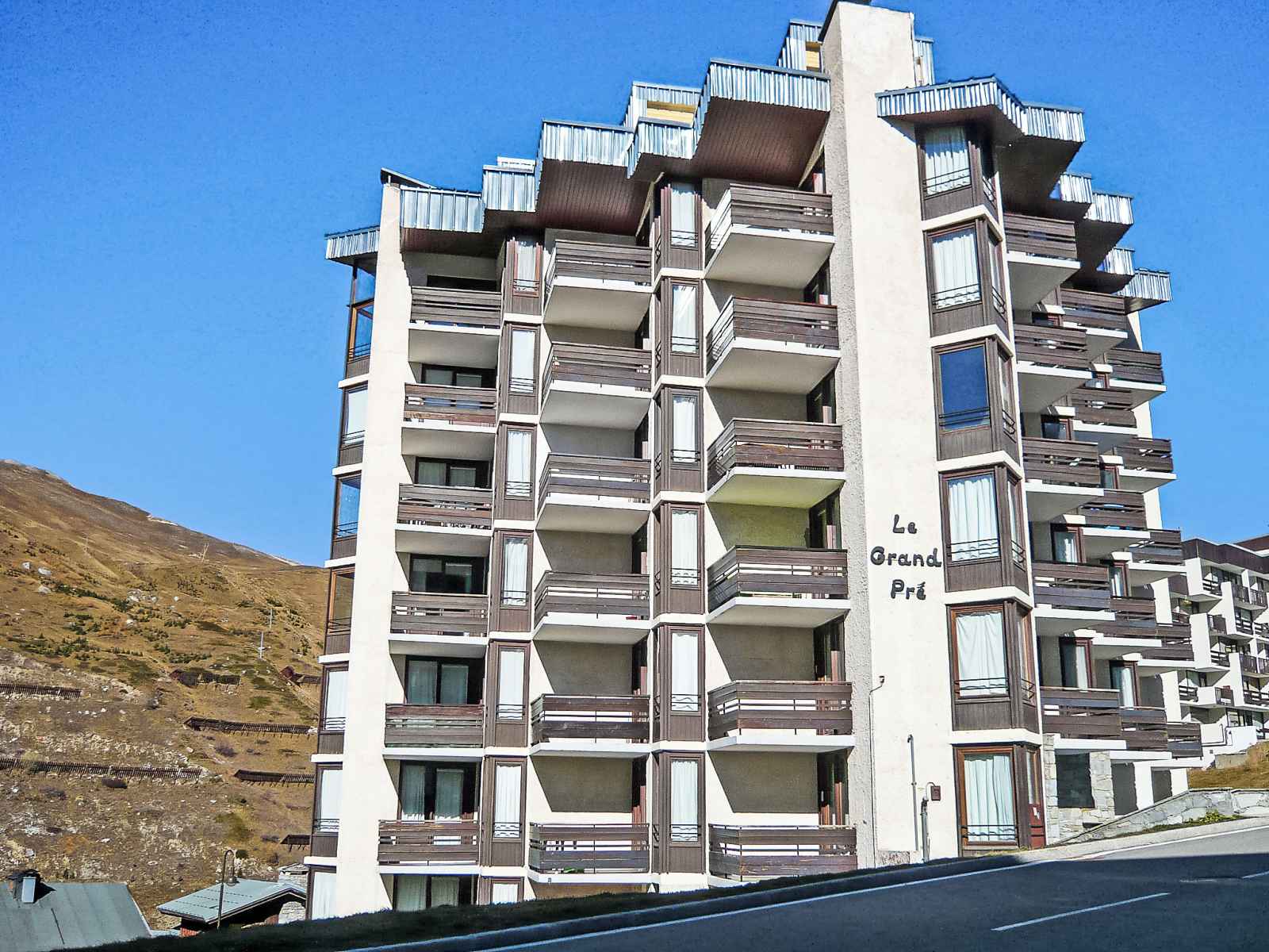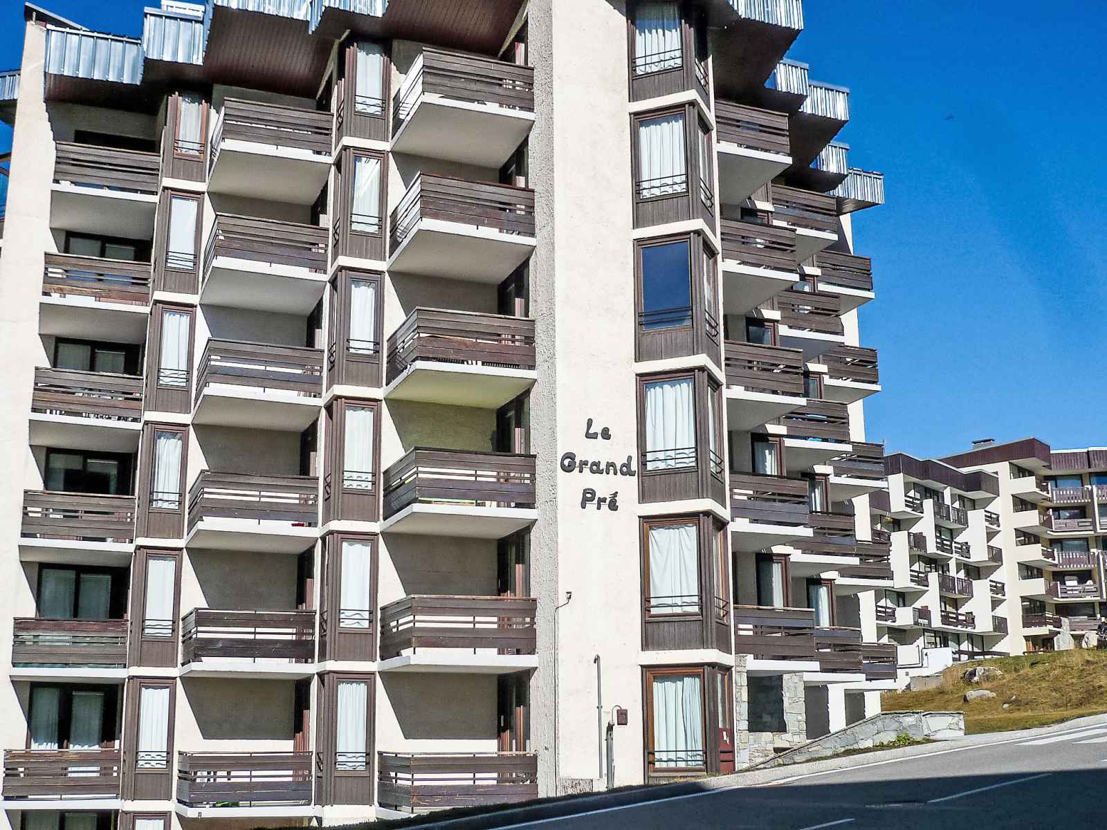Tignes lavachet: petite résidence "le grand pré (lavachet)". dans le quartier de lavachet, situation tranquille, ensoleillée dans un quartier résidentiel, excellente situation: centrale mais tranquille, à 1.2 km du lac, à 150 m du domaine skiable, orientée sud-ouest. infrastructures de la résidence: ascenseur, local pour les skis,