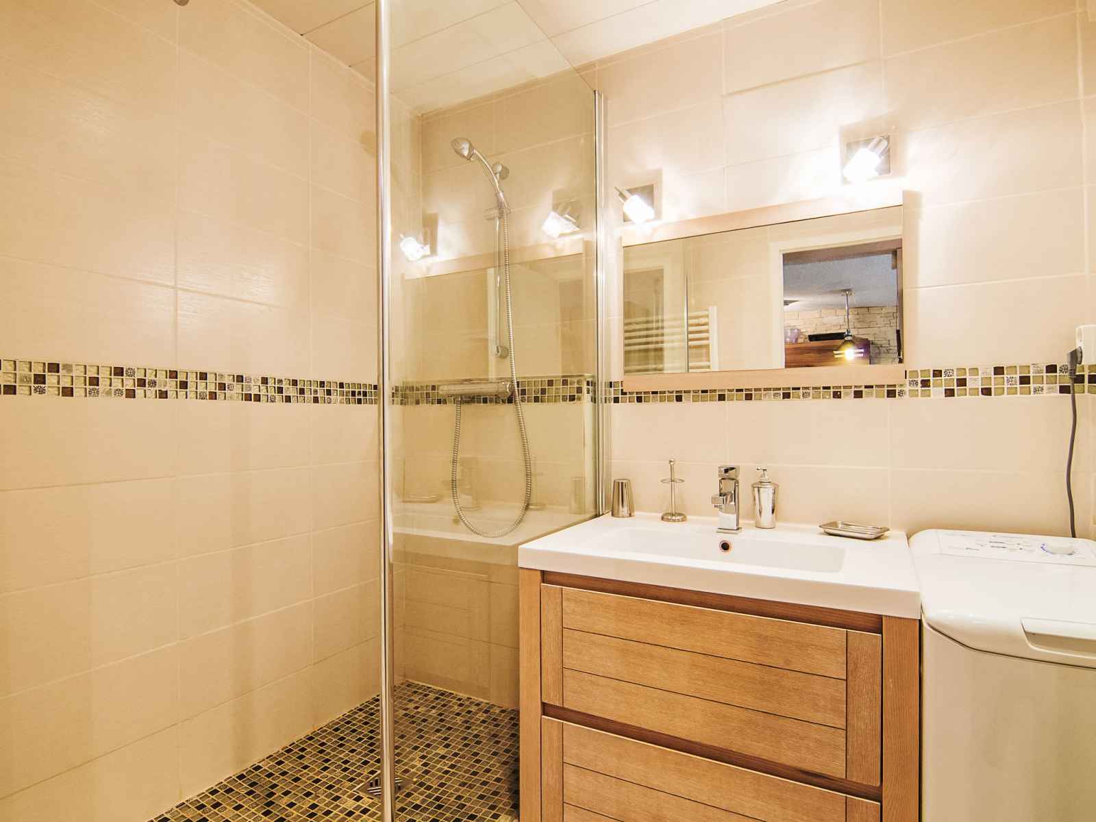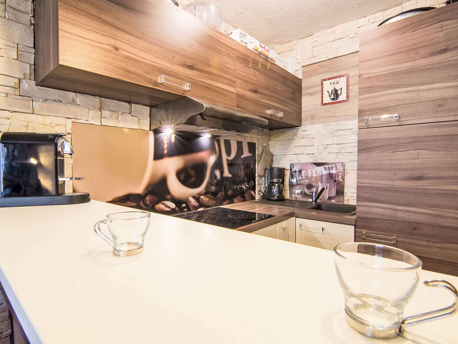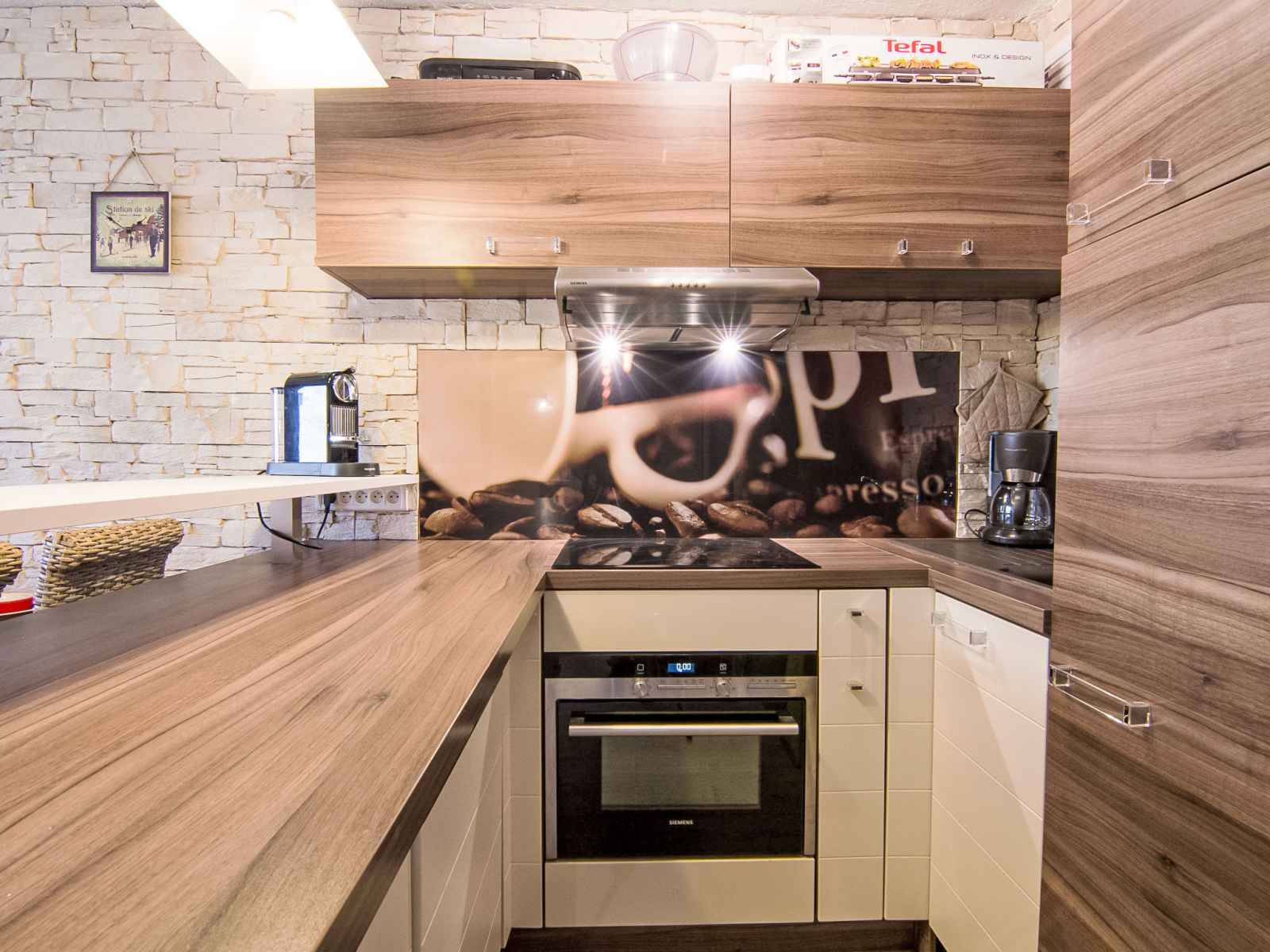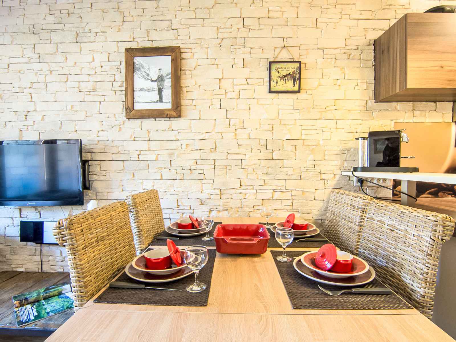 190 cm). Sortie sur la terrasse, orientée sud. Cuisine ouverte (four, lave-vaisselle, 4 plaques vitrocéramiques, micro-ondes, cafetière électrique, Capsules pour machine à café (Nesspresso) (NON INCLUSES)). Salle de bains, WC séparé. Sol en parquet. Terrasse 22 m2, situation sud et situation ouest. Meubles de terrasse. Très belle vue panoramique sur les montagnes et les pistes de ski. A disposition: lave-linge. Internet (Connexion WIFI, gratuit). Veuillez noter: adapté(e) aux familles. Logement non-fumeur. Détecteur de fumée. grand confort! trois cassiers privés: à ski, chaussures de ski et chaussures de ville, dans le couloir devant l'appartement.