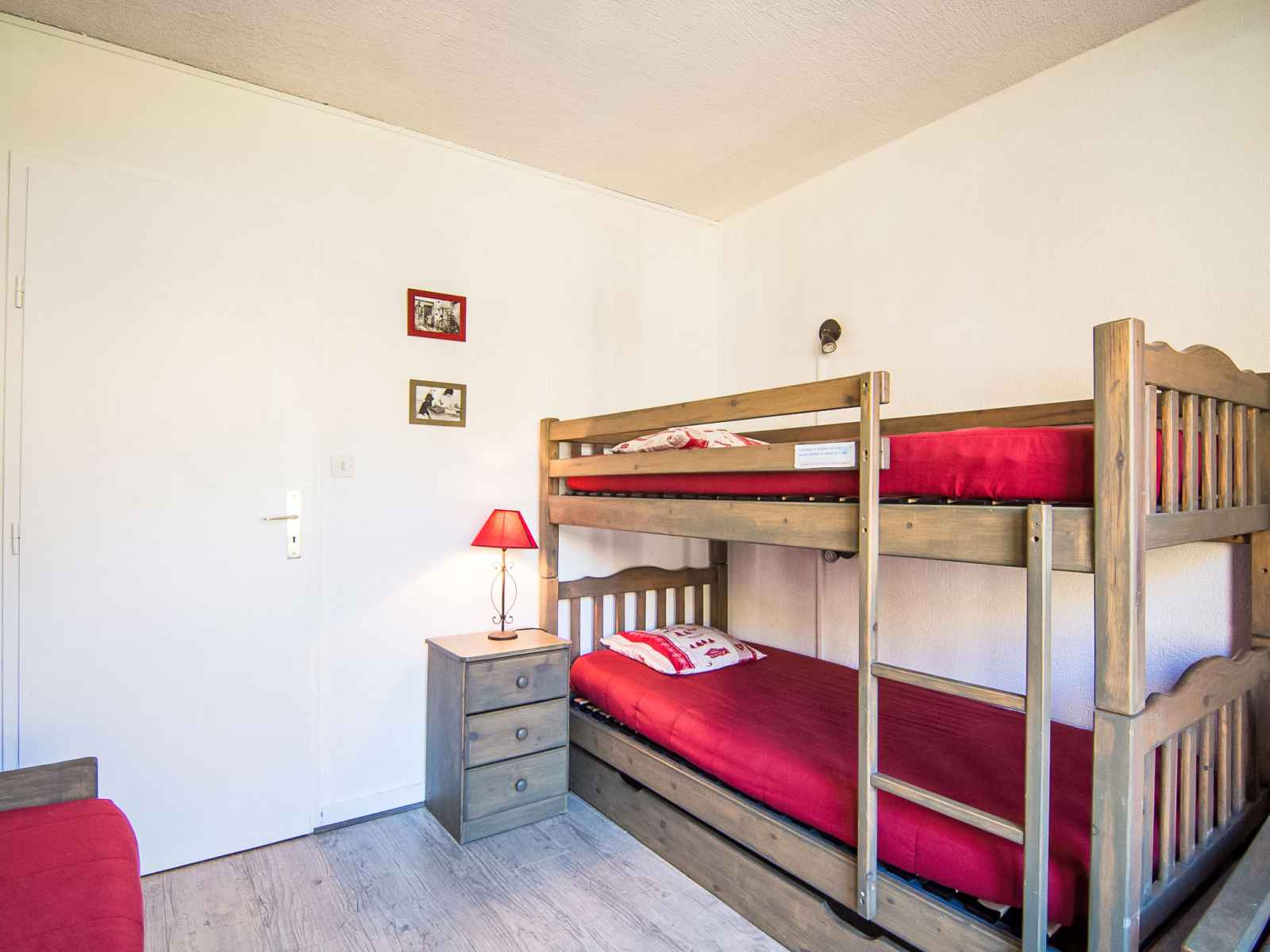Apt 2 pièces 37 m2, au rez-de-chaussée, situation sud. complètement rénové, aménagement très fonctionnel et de bon goût: séjour/salle à manger avec 1 divan-lit (140 cm), tv et chaîne stéréo. sortie sur la terrasse, orientée sud. 1 chambre avec 1 x 2 lits superposés (80 cm, longueur 190 cm), 1 lit gigogne (2 pers. 2 x 80 cm, longueur