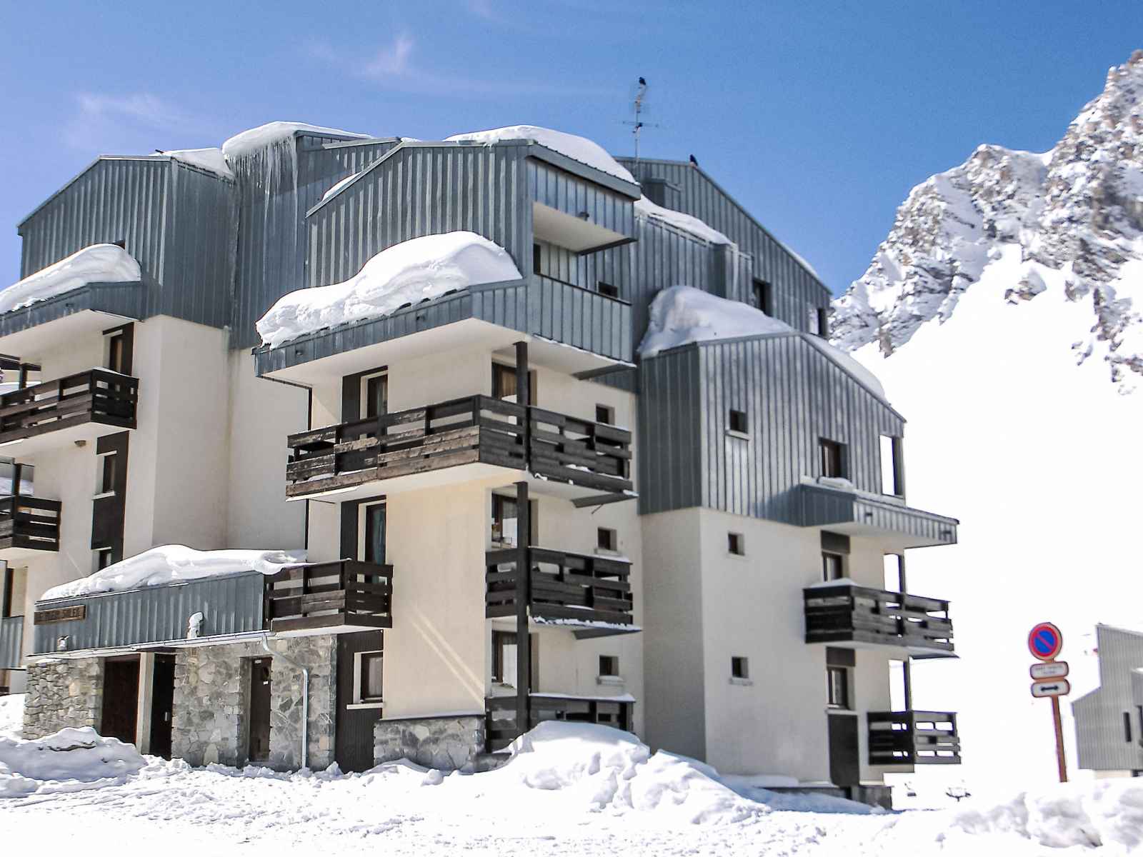 Tignes val claret: petite résidence "plein soleil (val claret)", de 5 étages. infrastructures de la résidence: ascenseur, local pour les skis, chauffage central. supermarché, restaurant 50 m, arrêt de bus 500 m, piscine couverte 2.2 km. centre sportif 2 km, remontées mécaniques 50 m. École de ski d'enfants 200 m. les domaines skiables de