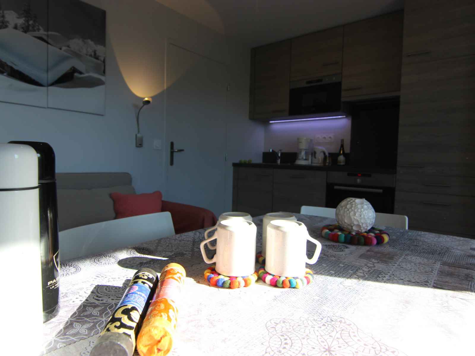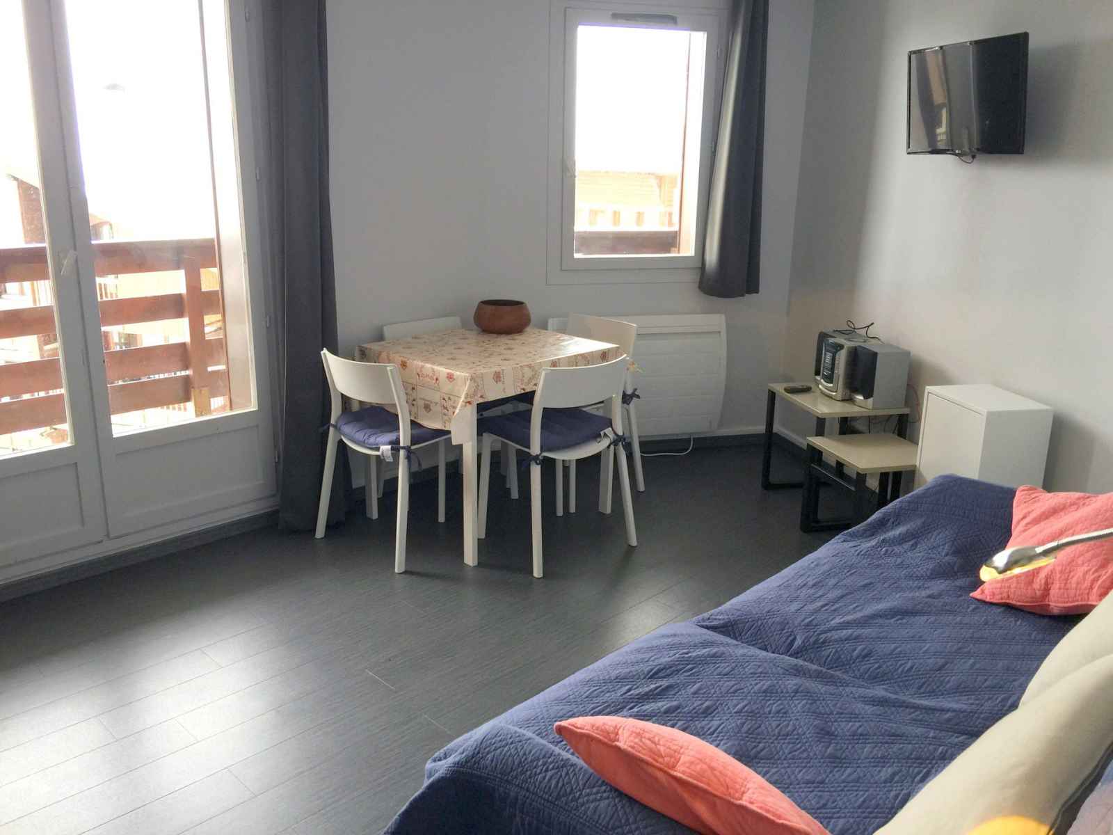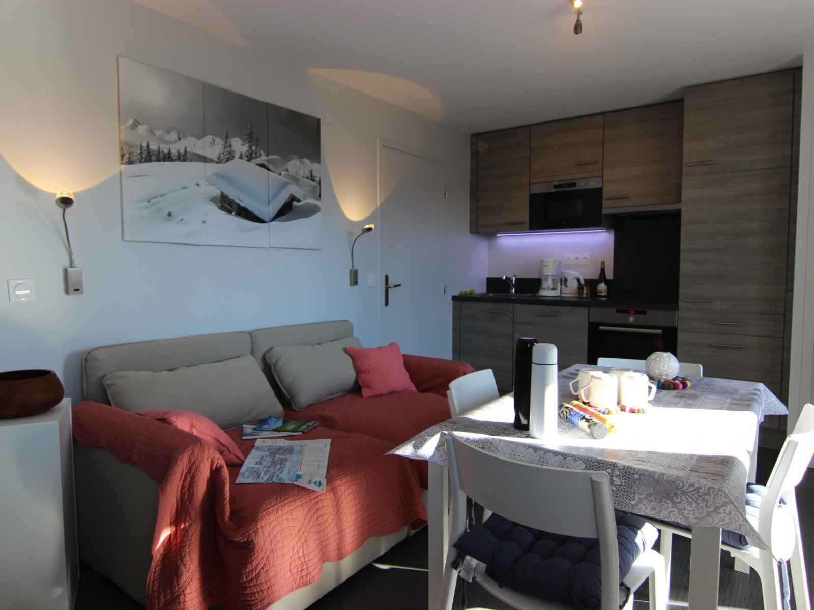 Très belle location moderne et fonctionnelle, idéalement située dans un quartier calme mais tout de même proche de toutes les commodités. La location est composée d’une cuisine fonctionnelle avec tous les ustensiles nécessaires (y compris une machine à raclette et une machine à café), la chambre contient aussi toute la literie nécessaire mais aussi un aspirateur, idem pour la salle de bain qui contient un fer à repasser et un sèche-cheveux. La vue du balcon est incroyable, elle donne sur les pistes et les montagnes. Seule réel bémol la porte est quelque peu compliquée à fermer et à ouvrir, mais hormis cela, nous recommandons à 100% cette résidence.