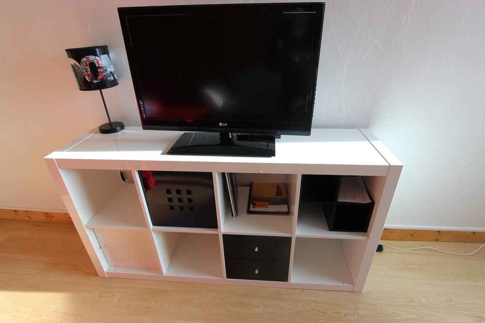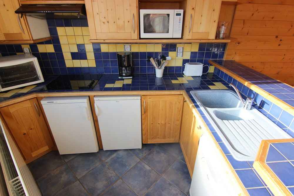 coin cuisine: four, plaques vitrocéramiques, réfrigérateur, lave-vaisselle et télévision.