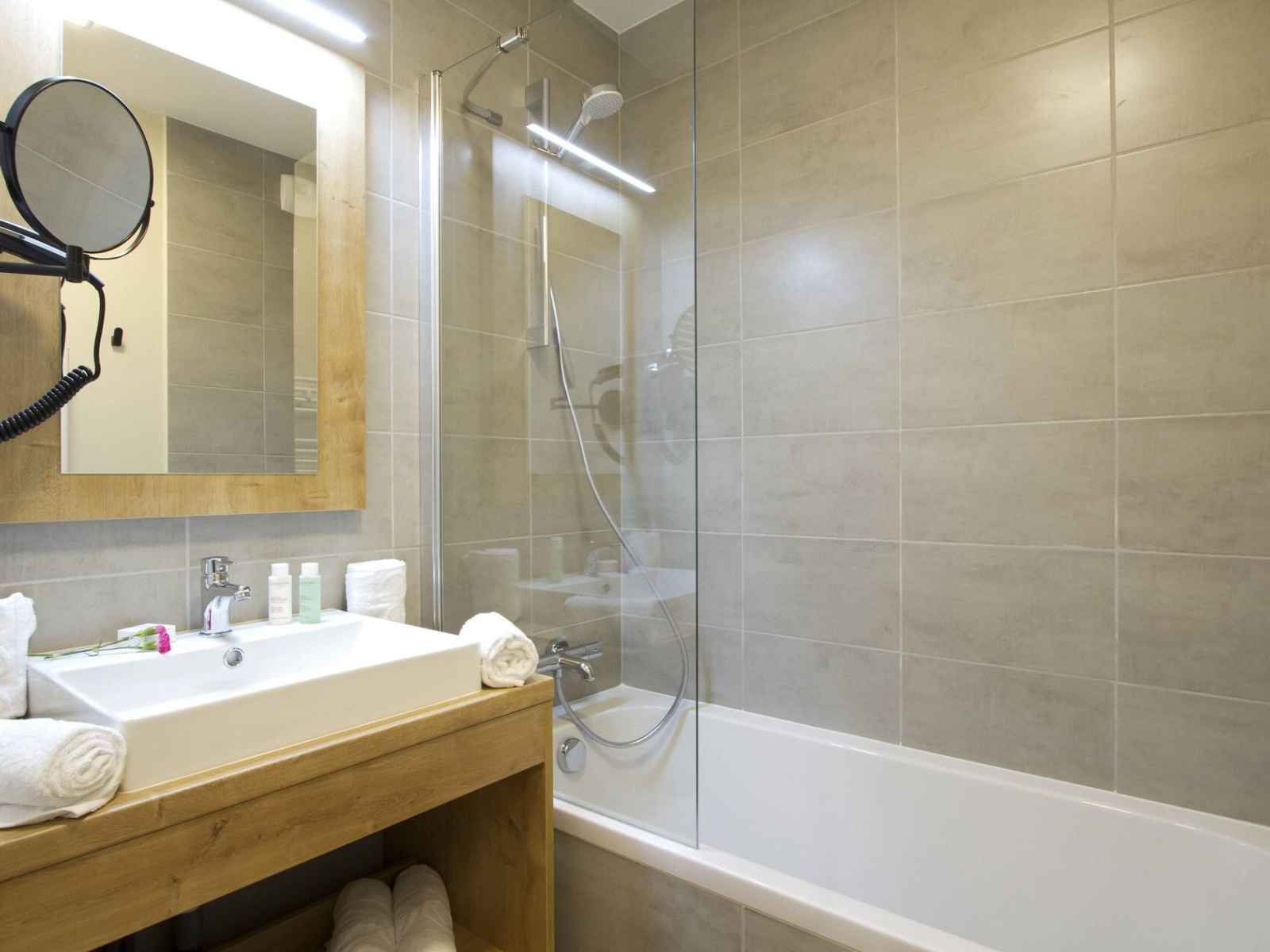 1 salle d'eau avec douche, sèche-serviettes