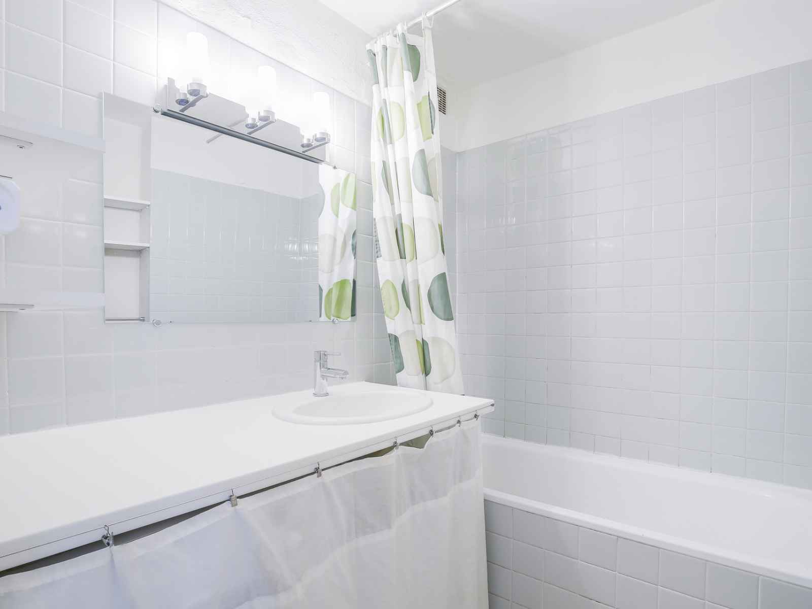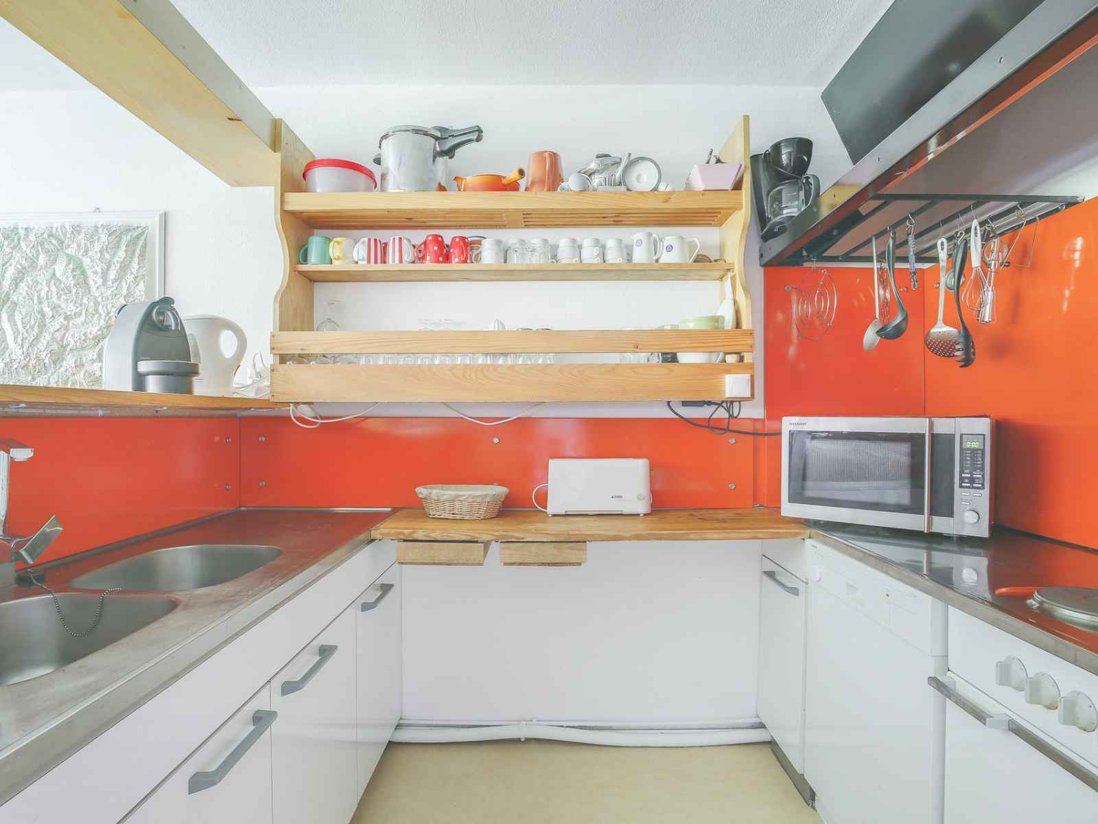 couchages : Dans le séjour se trouve un canapé lit 2 pers (140X190) La 1ère chambre avec lavabo et un lit double (140X190). La 2ème chambre avec 2 ensembles de lits superposés (80X190). Merci de noter que le couchage en hauteur ne convient pas aux enfants de moins de 6 ans. Les sanitaires Une salle de bains avec baignoire et un WC séparé. Le coin cuisine ouvert sur le séjour Il est équipé de plaques électriques, d'un combiné four micro-ondes, d'un lave-vaisselle et d'un réfrigérateur. Les équipements complémentaires Une télévision, un lave linge, un casier à ski Informations supplémentaires Nos amis les animaux ne sont pas tolérés dans cet appartement. Linge de lit inclus sauf pour les courts séjours et en été.