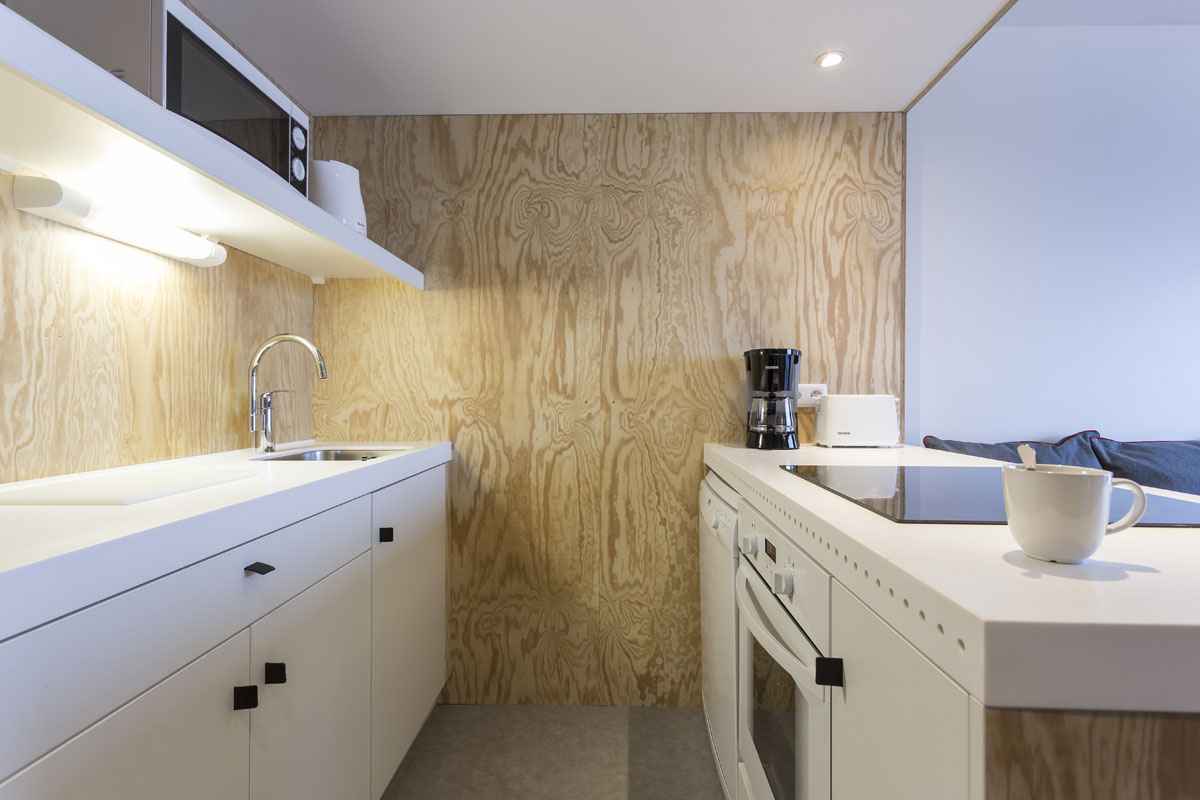 Cuisine comprenant : four traditionnel, micro-ondes, lave-vaisselle, grille-pain, bouilloire, cafetière électrique à filtre + Nespresso, 3 plaques vitrocéramique, réfrigérateur/freezer
