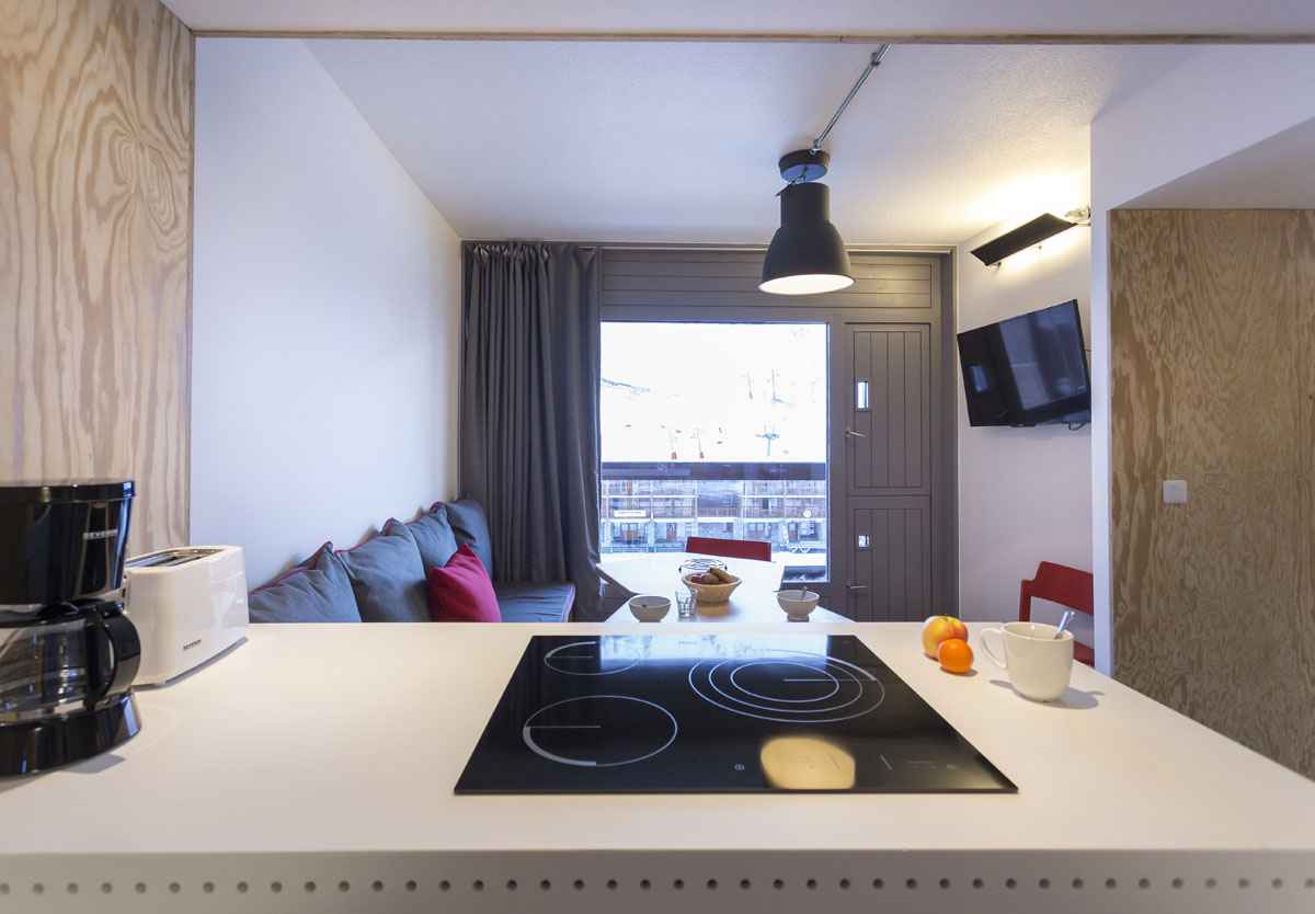 séjour : ouvert sur la cuisine avec une tv port usb.
