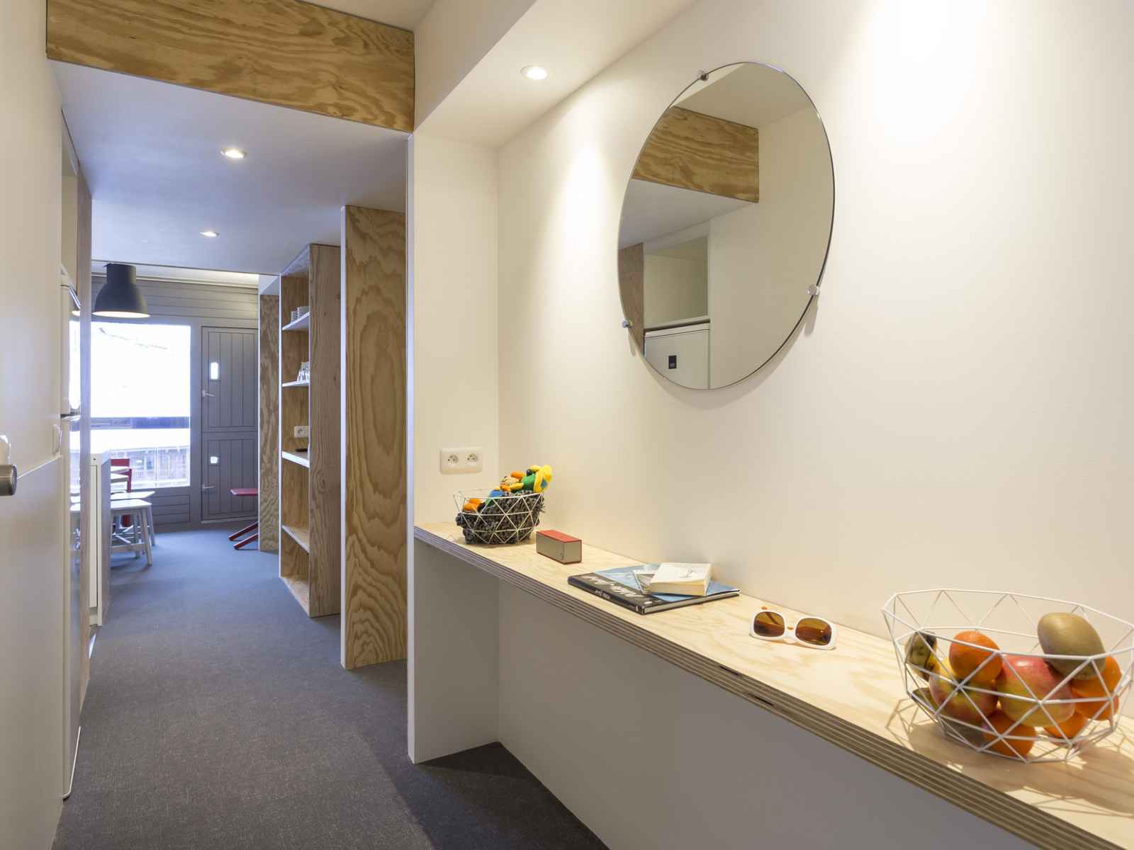 Les casiers à skis sont situés à côté de la porte d'entrée de l'appartement dans le SAS d'entrée.