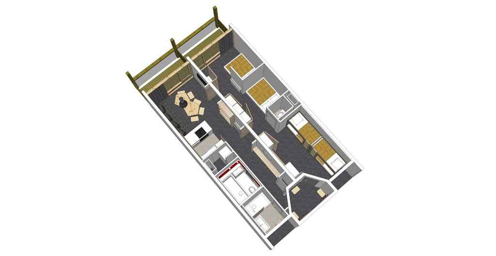 appartement 3 pièces cabines composé comme suit :