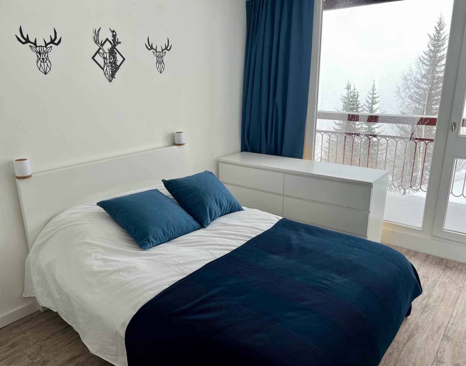 Appartement rénové et chaleureux, 3 pièces de 54 m2 pour 6/7 personnes, situé au 8ème étage de la résidence varet 2, balcons exposés nord/nord-ouest avec vue côté mont blanc.