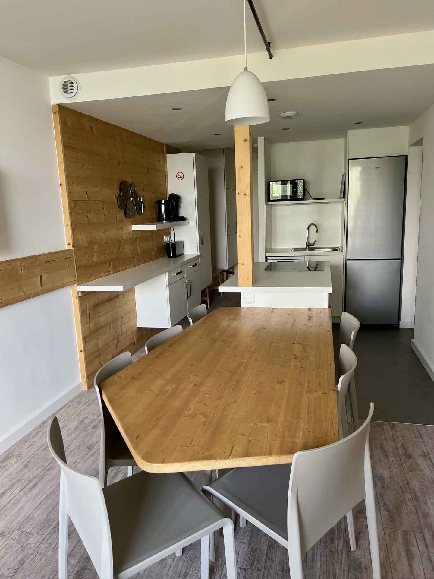 cabine 1 : lit double en 140cm Chambre cabine 2 : 1 lit simple et de 2 lits superposés en 80cm (le couchage en hauteur ne convient pas aux enfants de moins de 6 ans) Sol en flotex et lino pour la cuisine Cuisine comprenant : four traditionnel, micro-ondes, lave-vaisselle, grille-pain, bouilloire, cafetière électrique à filtre + cafetière senséo, 3 plaques vitrocéramique, réfrigérateur/freezer, appareil à raclette, bras mixer Salle de bain avec WC Salle de douche avec WC Linge de lit, de bain et ménage fin de séjour en supplément. Placard à skis à l'intérieur de l'appartement Non fumeur Animaux refusés WIFI gratuit