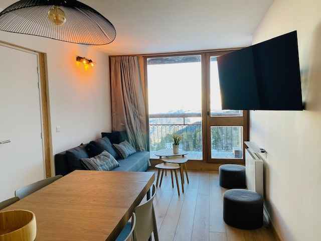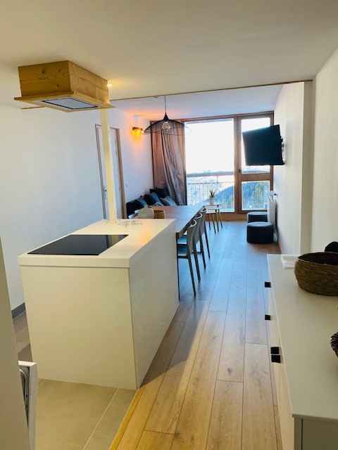 Appartement 3 pièces rénové de 56 m2 pour 6/7 personnes, situé au 7ème étage de la résidence varet 2, balcons exposés nord/nord-ouest avec vue côté mont blanc