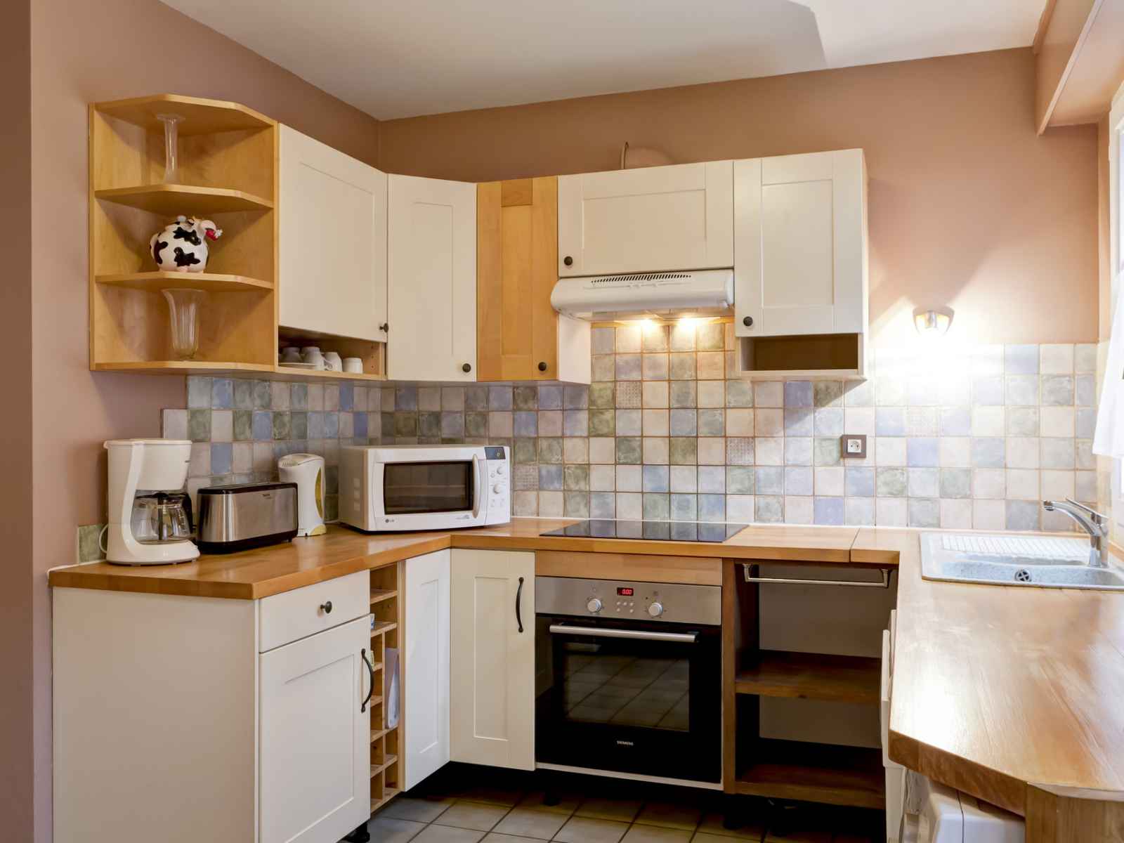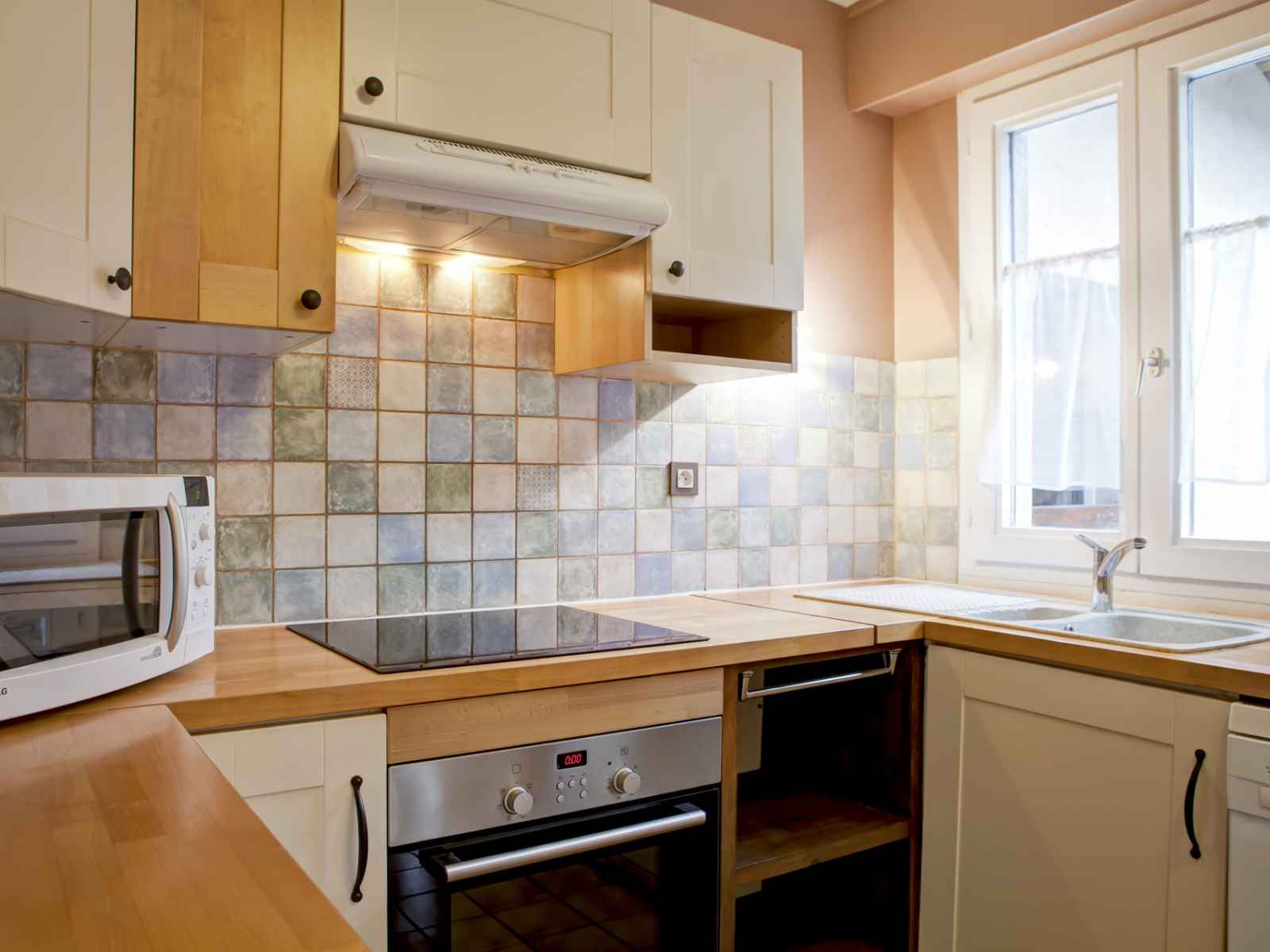 cuisine américaine avec plaques vitrocéramiques, hotte aspirante,