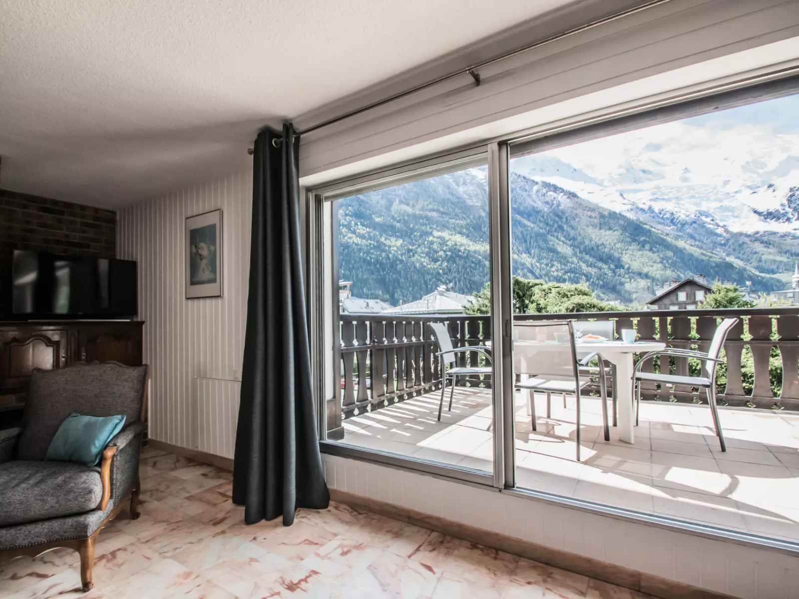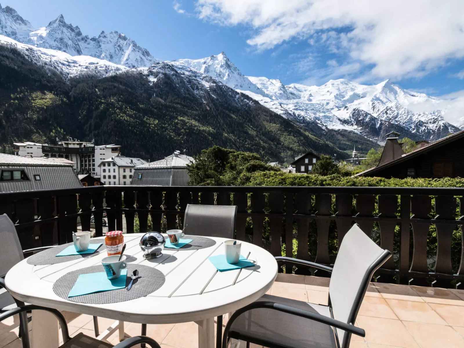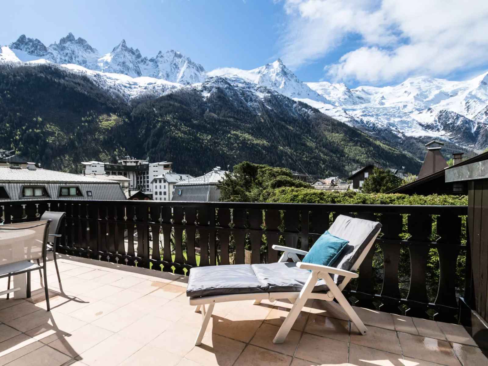 - Accès à la grande terrasse face au Mont-Blanc équipée d'un salon de jardin