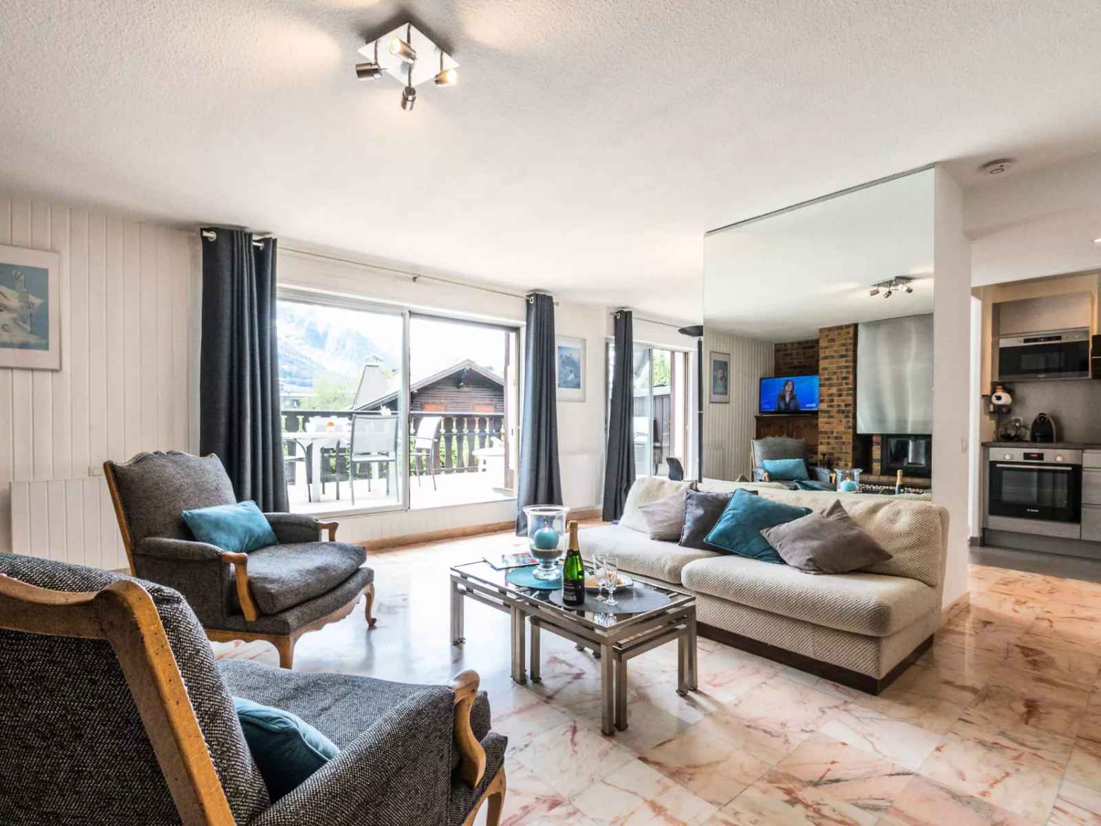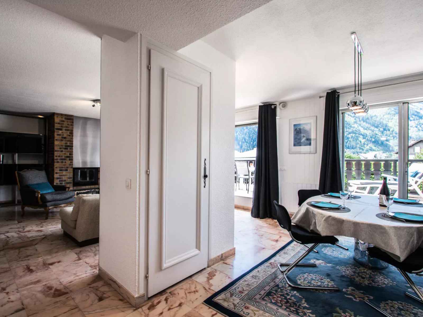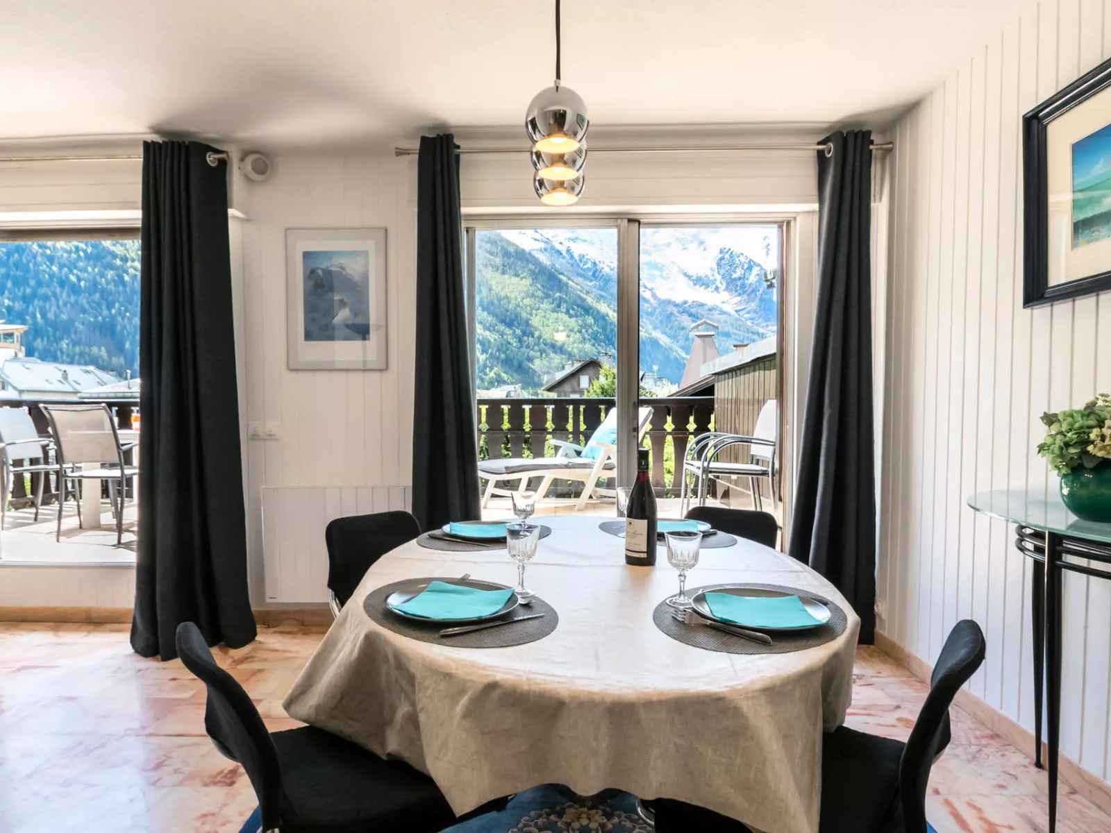 - Accès à la grande terrasse face au Mont-Blanc équipée d'un salon de jardin