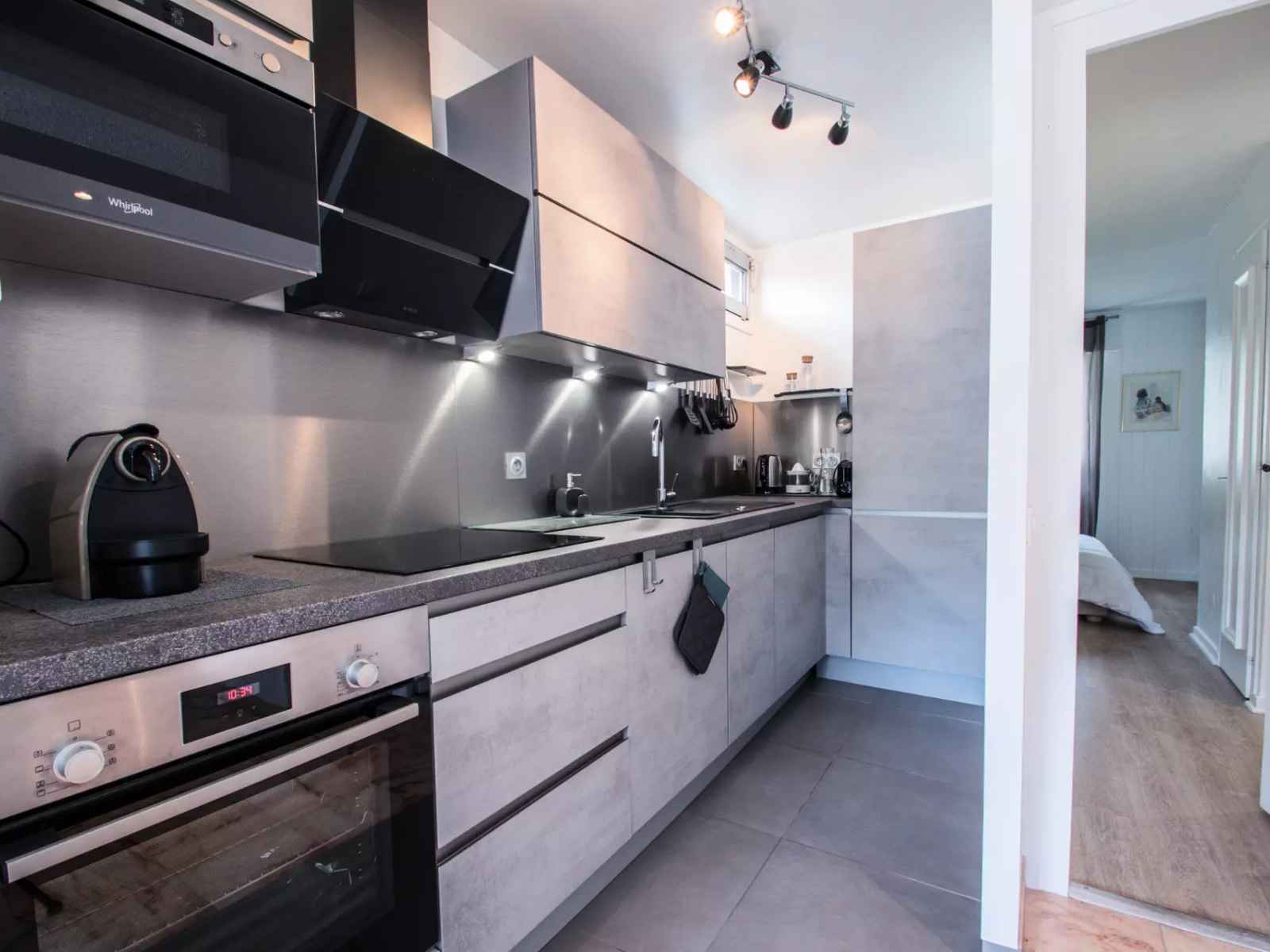 - cuisine ouverte équipée de four, micro-ondes,