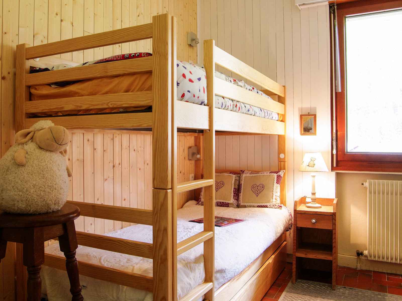 Apt 3 pièces 70 m2 au 5ème étage. séjour/salle à manger avec tv. sortie sur le balcon. 1 chambre avec 1 grand-lit (150 cm, longueur 90 cm). sortie sur le balcon. 1 chambre avec 1 x 2 lits superposés (80 cm, longueur 190 cm). coin cuisine (four, lave-vaisselle, 3 plaques à induction, bouilloire électrique, micro-ondes, cafetière