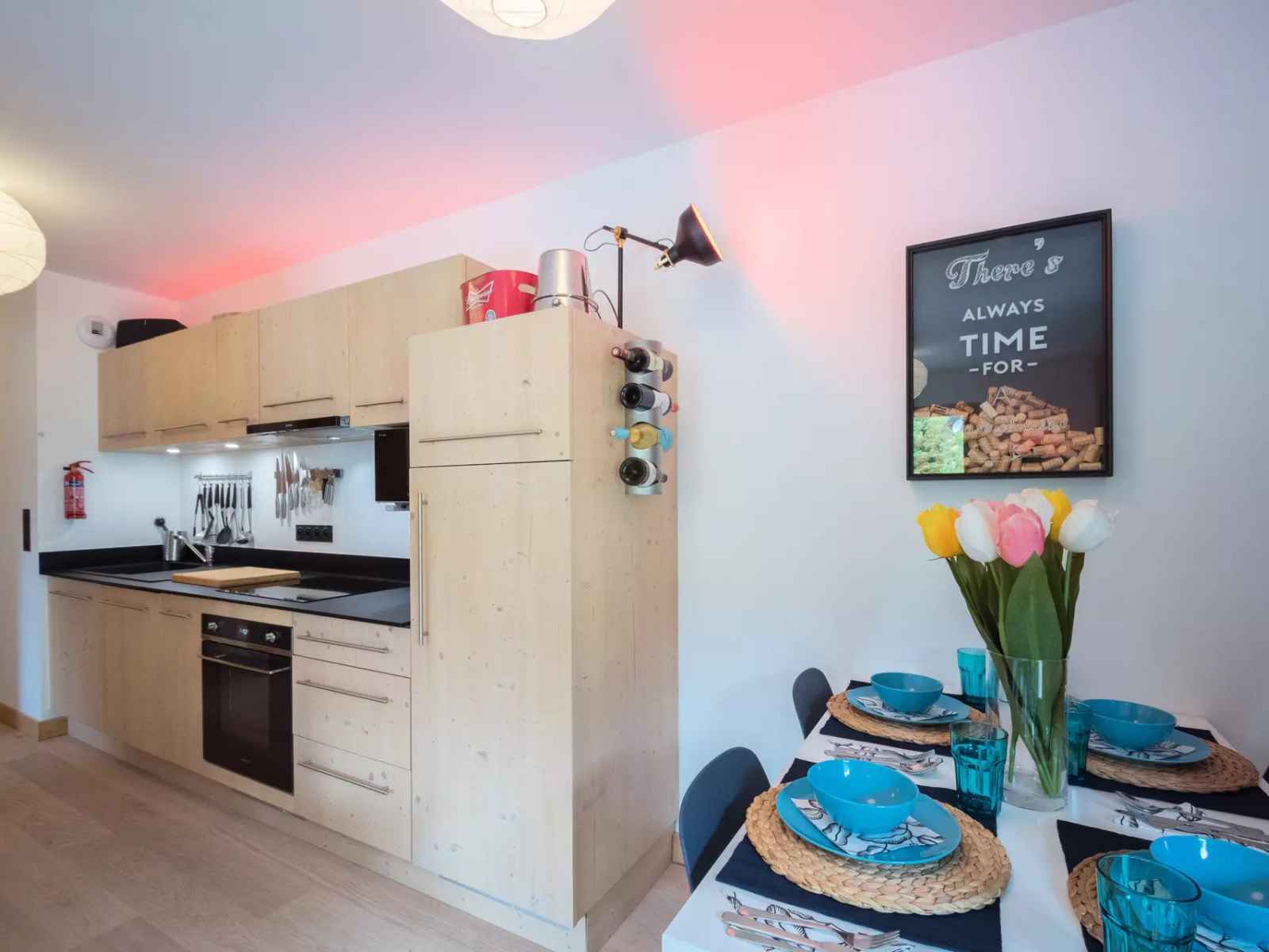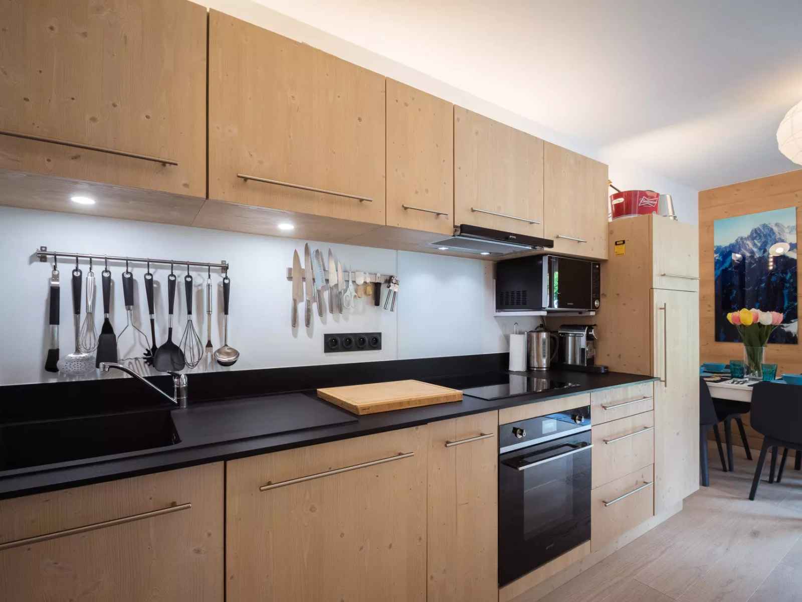 - Cuisine ouverte et équipée (réfrigérateur, congélateur, lave-vaisselle, plaques à induction, four, et micro-ondes, appareils à raclette et à fondue, Nespresso, grille-pain, bouilloire, auto-cuiseur pour riz)