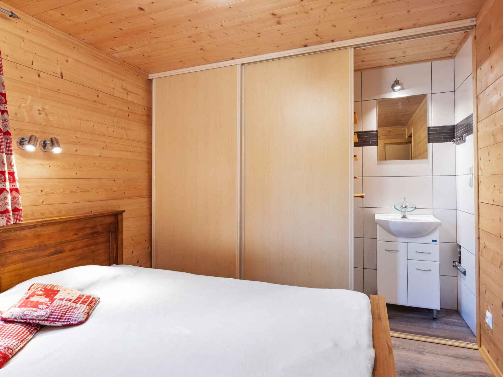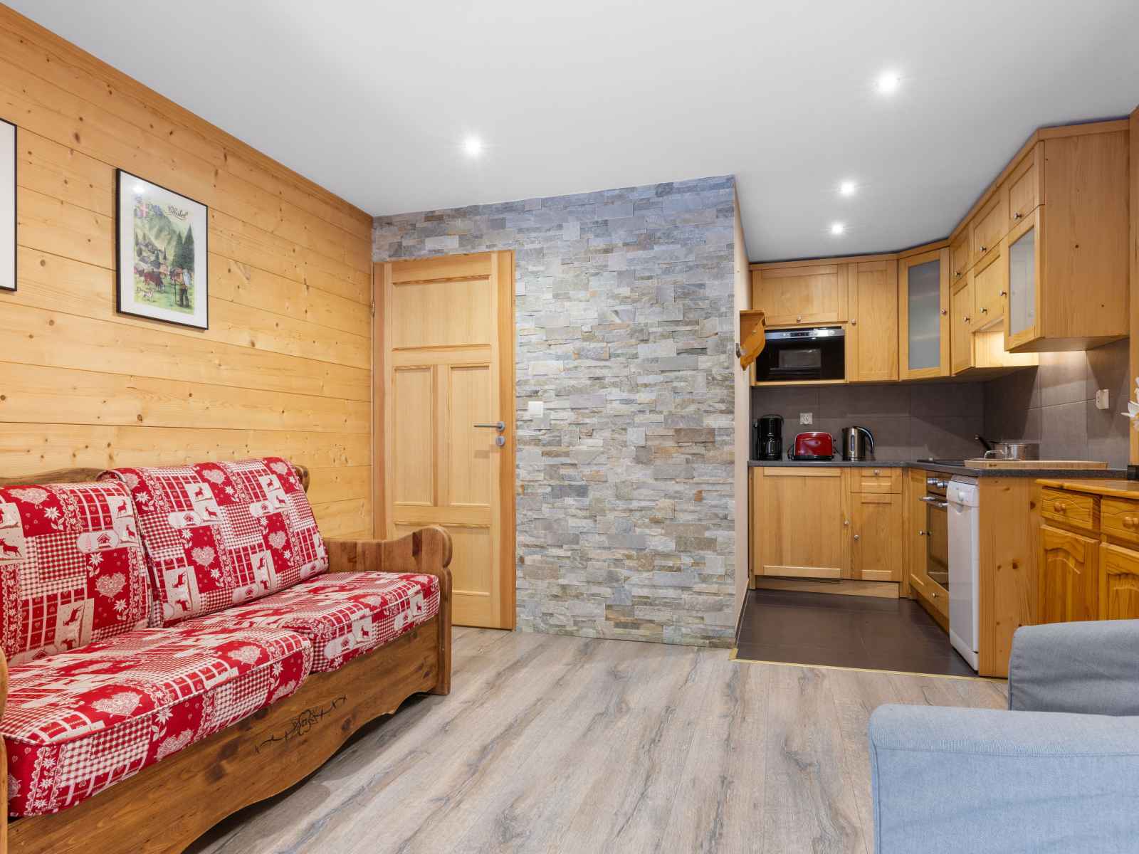 "le petit savoyard", apt 3 pièces 46 m2 au 1er étage, situation sud. rénové en 2015, aménagement plaisant et avec beaucoup de bois: séjour/chambre à coucher avec 1 divan-lit double, table pour les repas et tv (satellite). sortie sur la terrasse. 2 chambres doubles, chaque chambre avec: 1 lit double. cuisine ouverte (four, lave-vaisselle, 4