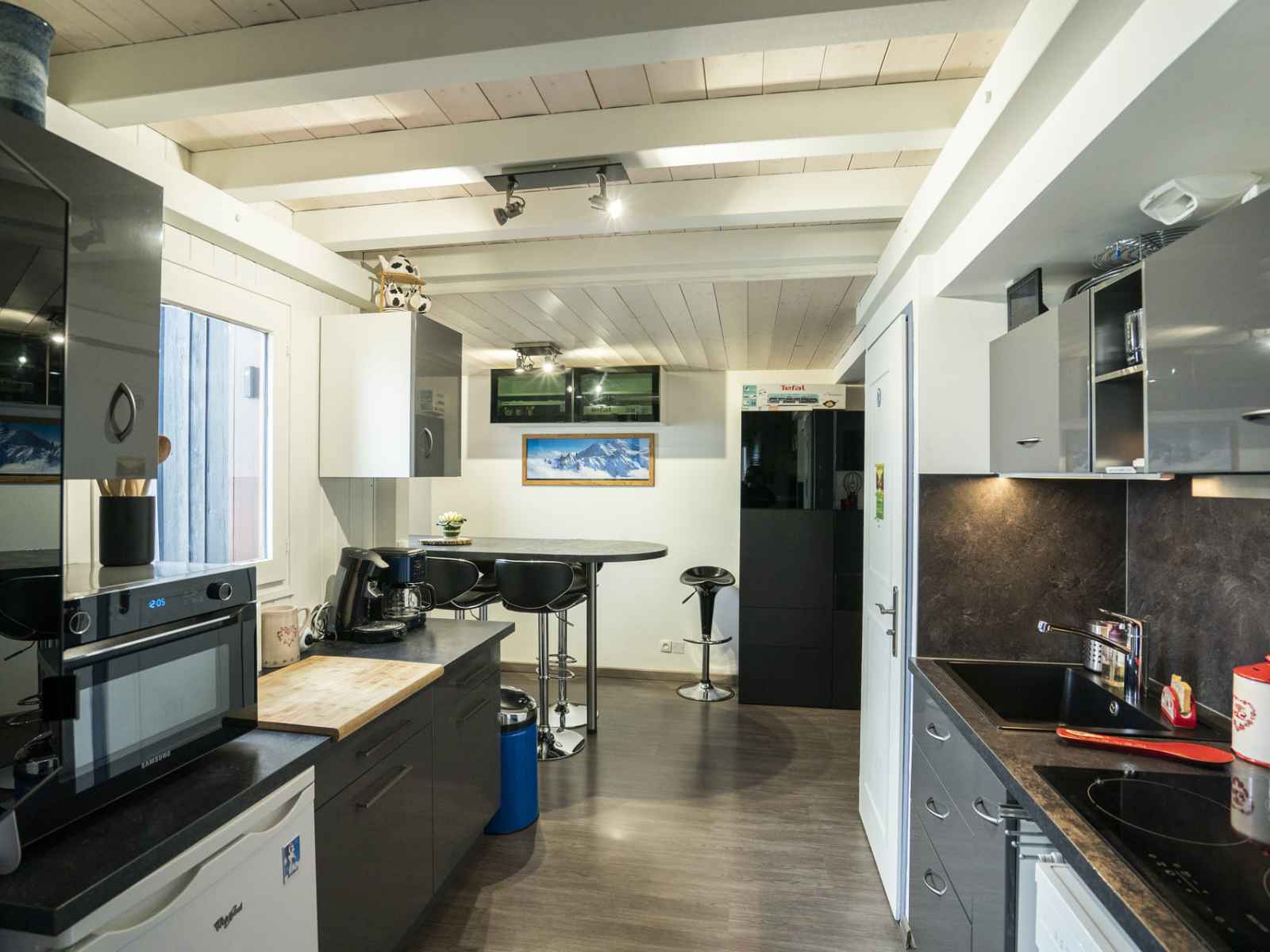 plaques à induction, grille-pain, bouilloire électrique, micro-ondes, cafetière électrique, appareil à raclette). 2 douches, WC séparé. Chauffage électrique. Petite terrasse. Meubles de terrasse. Vue latérale sur les montagnes. A disposition: Internet (Connexion WIFI, gratuit). Place de parking (1 Voiture). Veuillez noter: logement non-fumeur. Détecteur de fumée. 74063000278X4