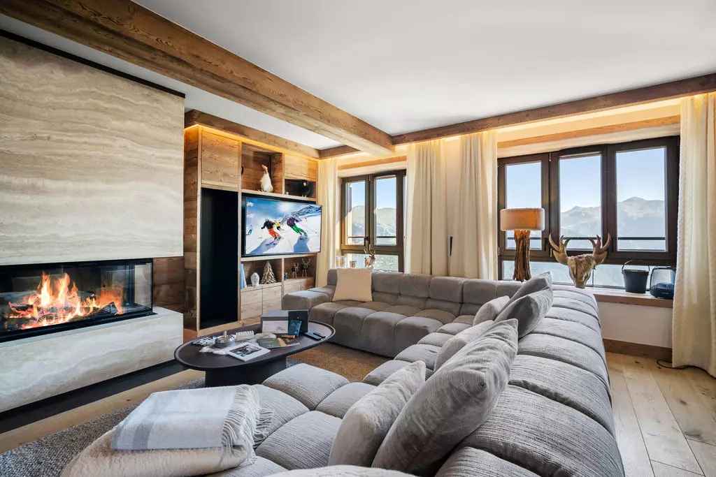 Appartement de 45 m² pour 5 personnes maximum, skis aux pieds, au coeur de courchevel 1850. exposé ouest vue sur les pistes de skis.