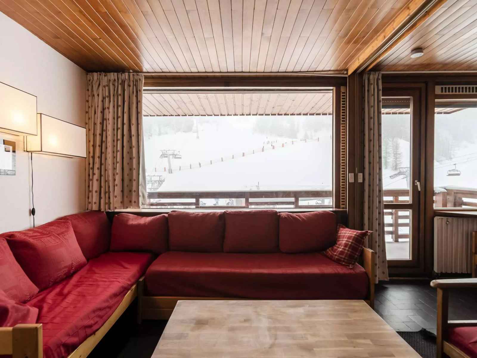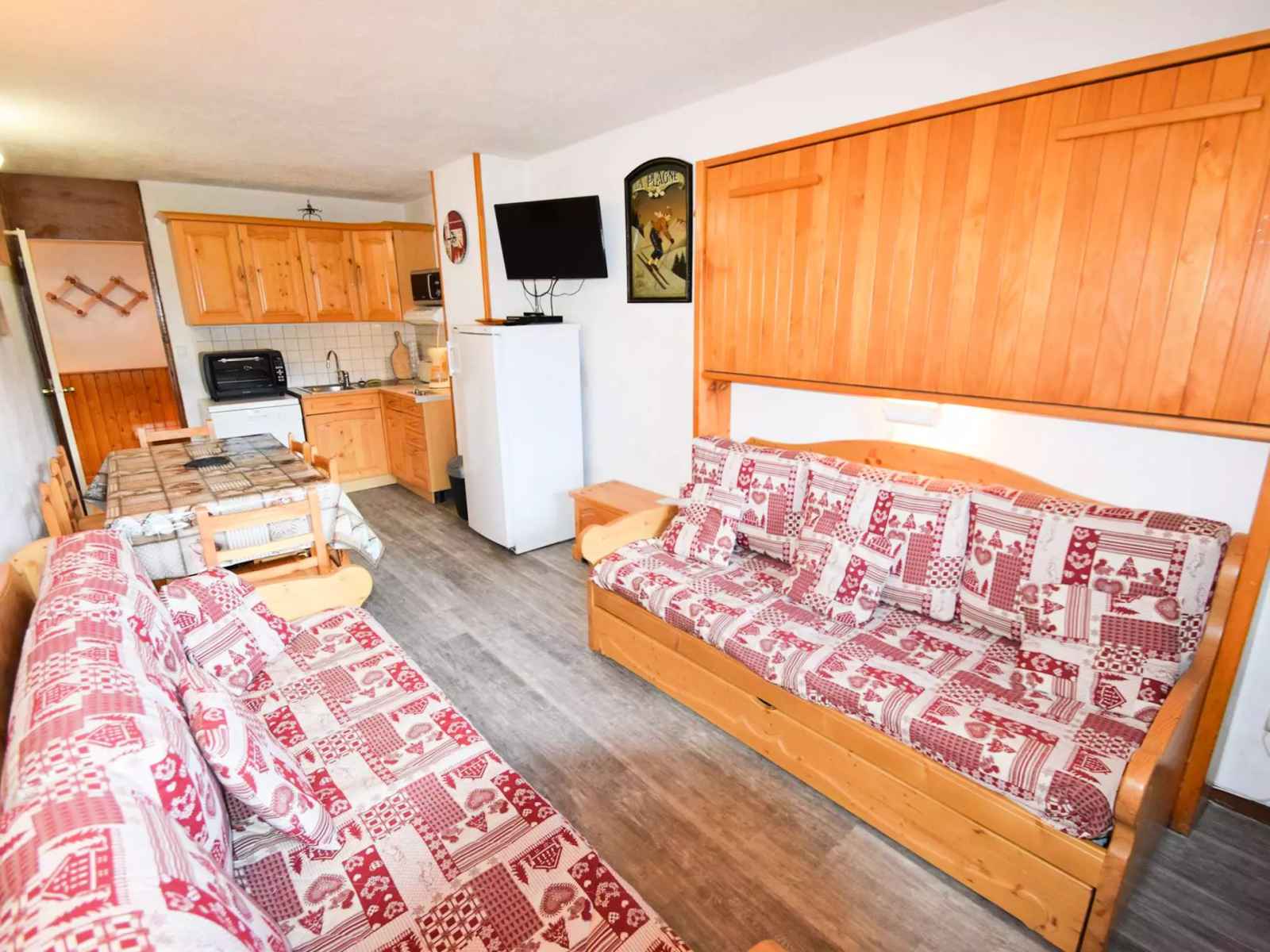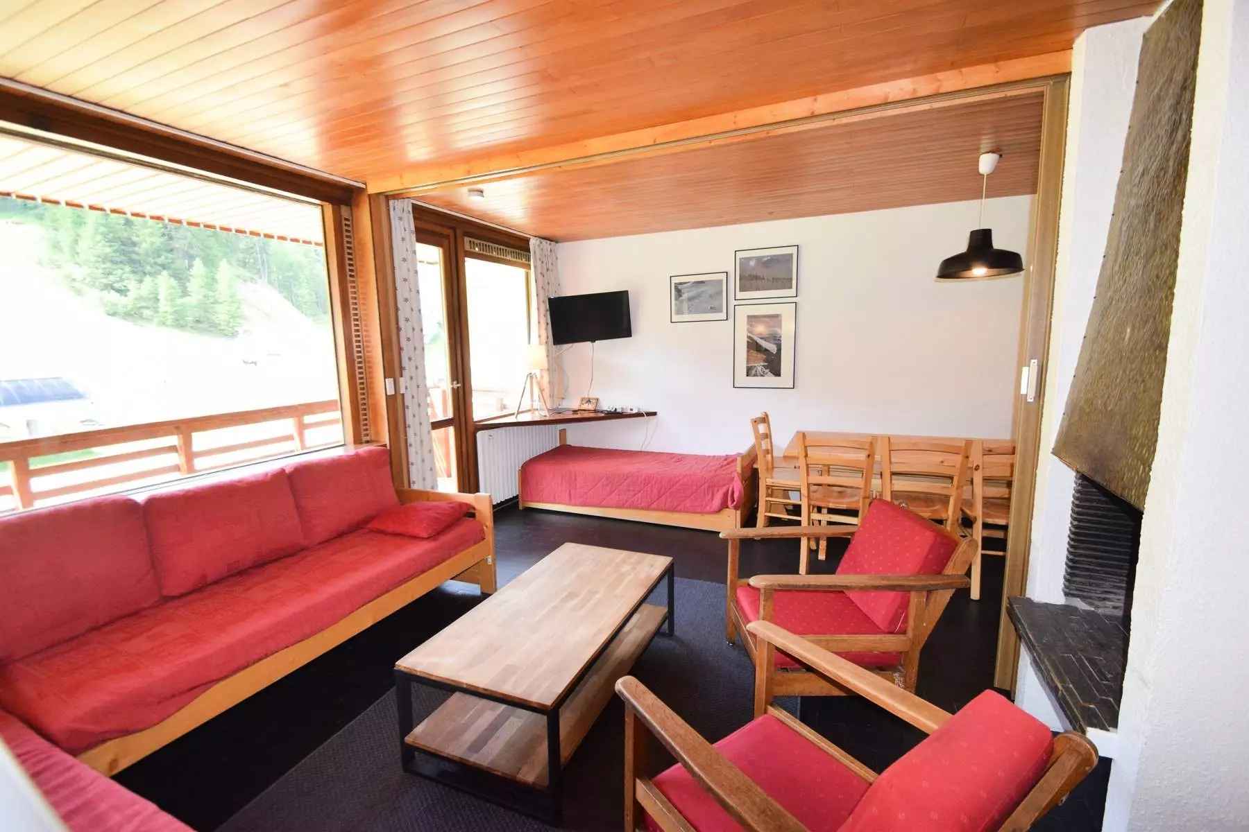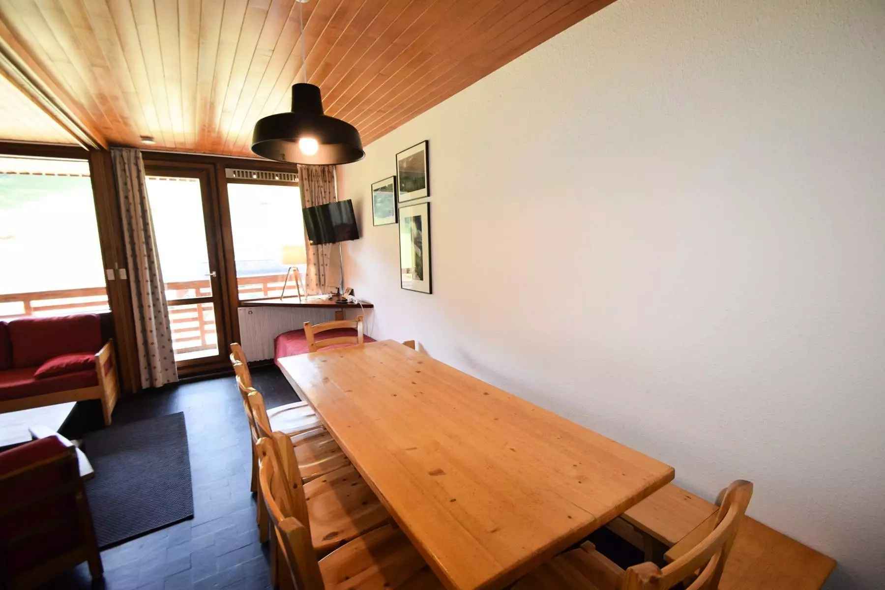 appartement 8 pers séjour divisible + 2 chambres, 8 pers.,70m², balcon exposé plein sud, très belle vue sur les pistes - 3ème étage sans ascenseur -(côté route : escaliers montée/descente pour accès au rdc de la résidence) cuisine séparée : 4 plaques vitrocéramiques, four traditionnel,