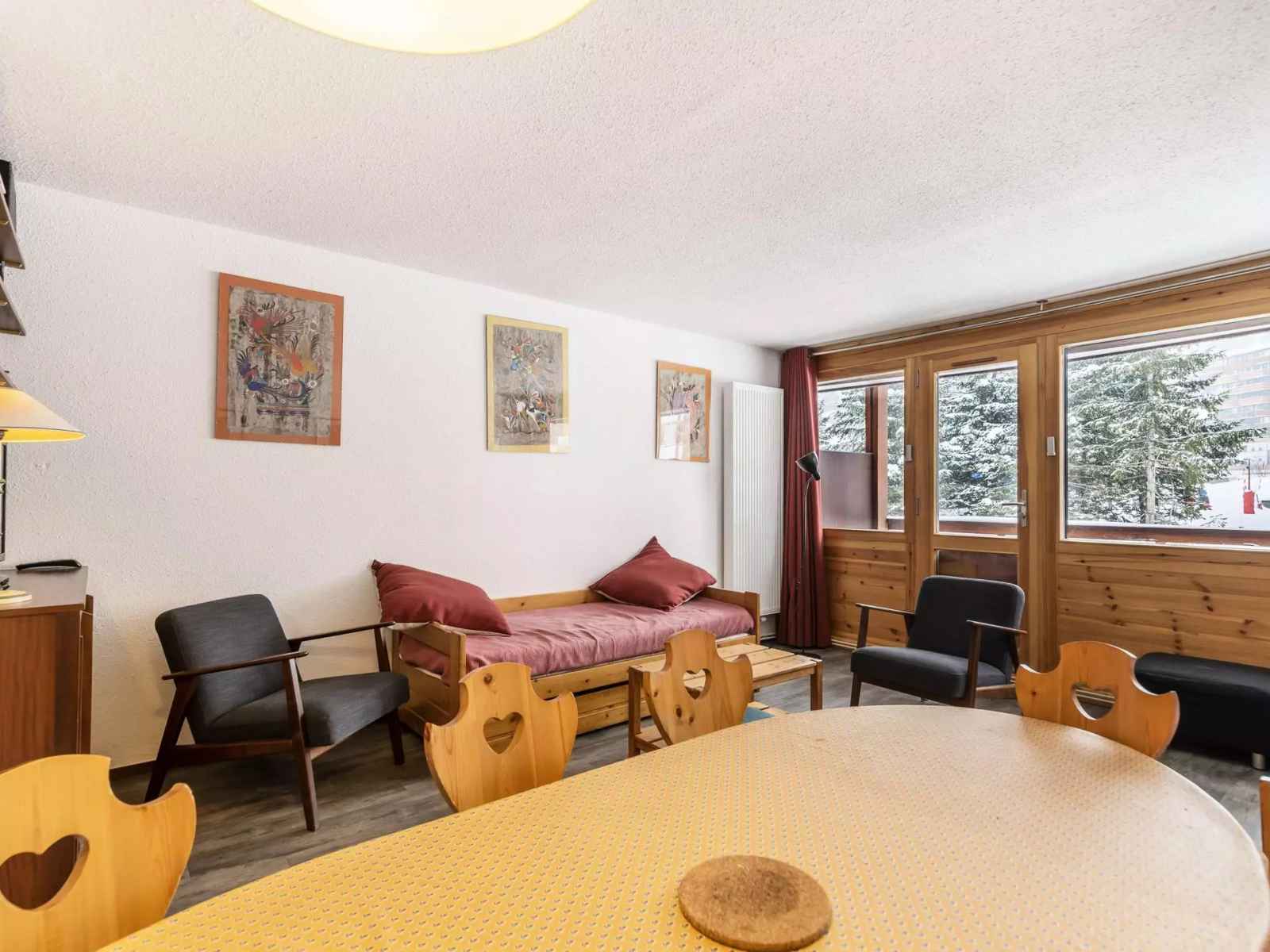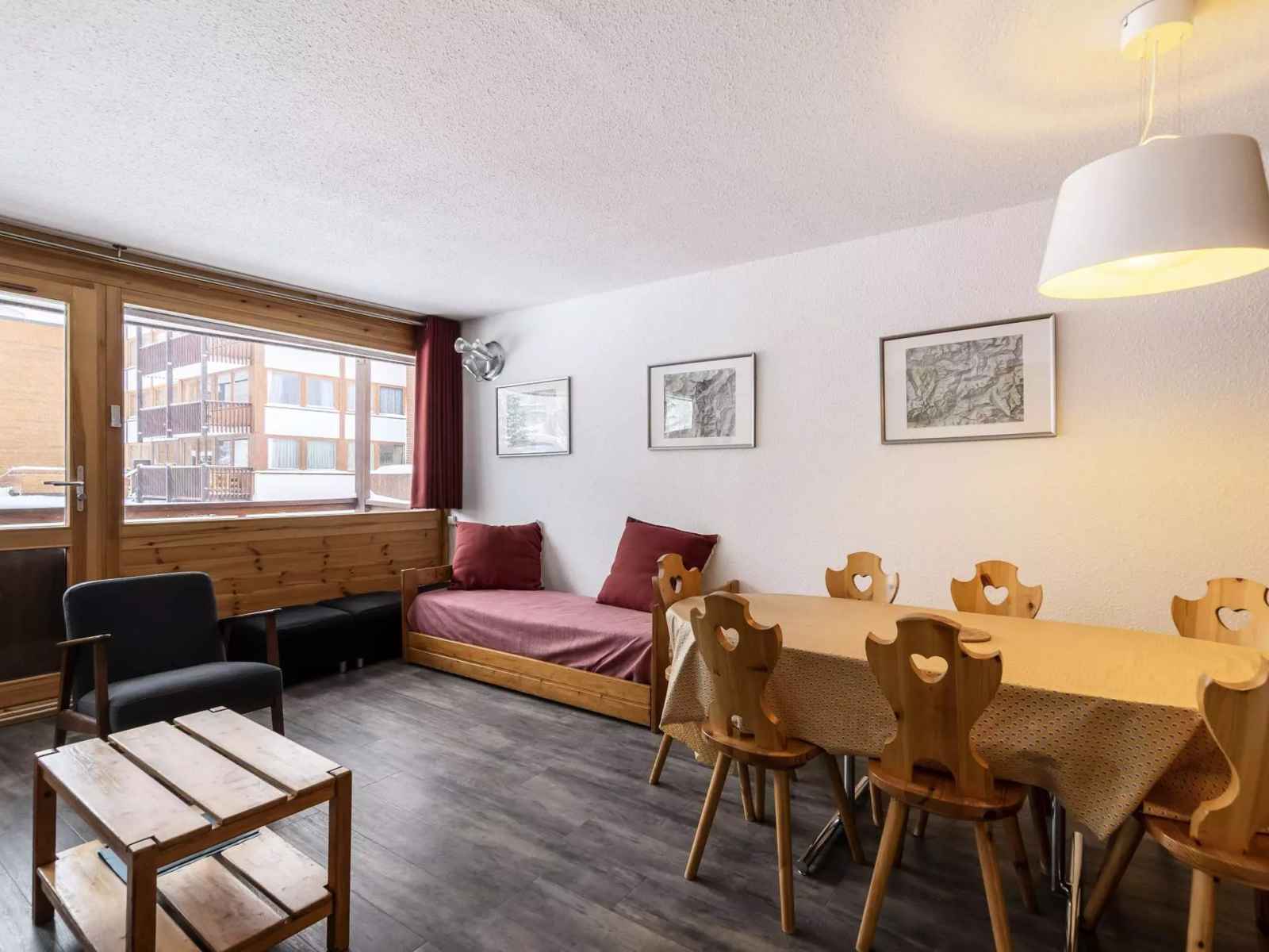 Appartement agréable et calme bien placé au cœur de la station. WIFI INCLUS. Petite résidence calme de 2 étages sans ascenseur, accès direct intérieur à la galerie commerciale. Casier à skis n° 201 au RDC.